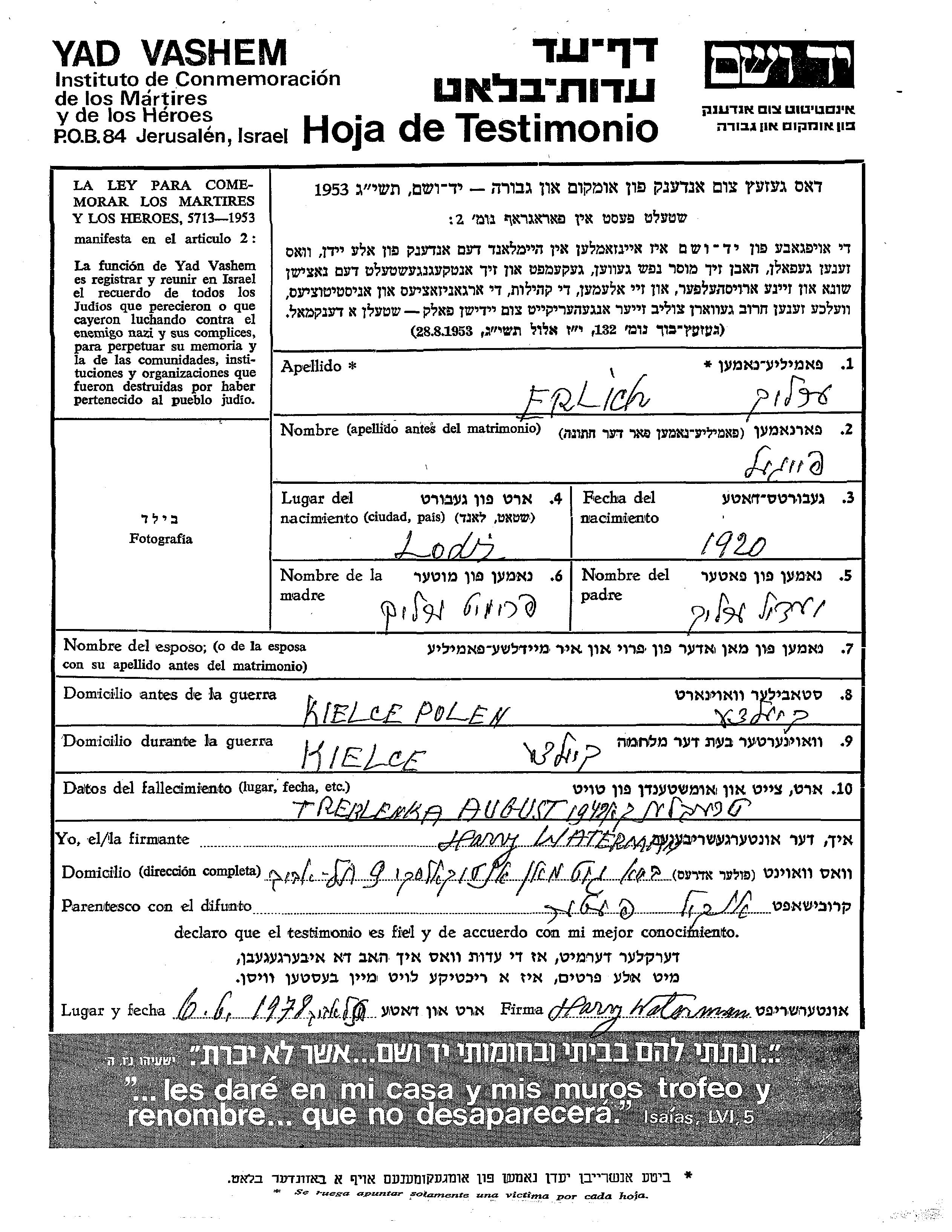 Erlich Feigil 1920 Kielce, Polen Gedenkblatt