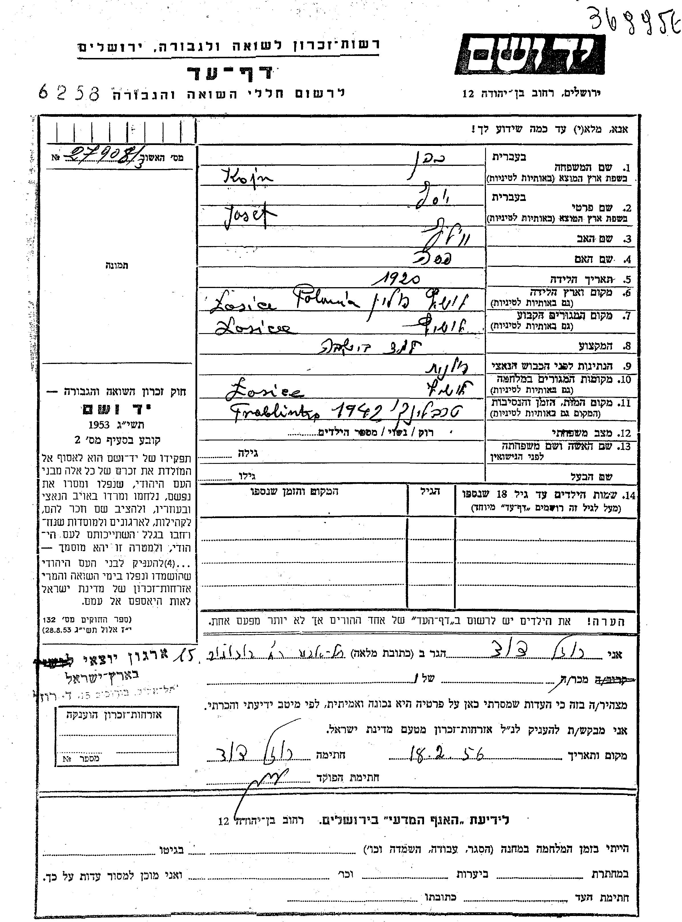 Josef wurde in der Schoah ermordet. Todesort: Treblinka, Polen im Jahr 1942.
