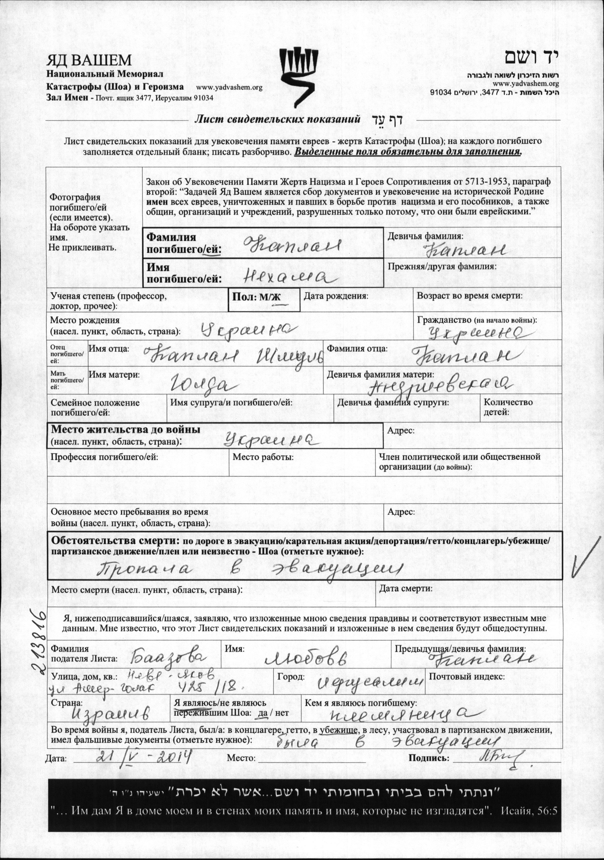 Nekhama wurde nach der Evakuierung/ ins Innere der Sowjetunion registriert.