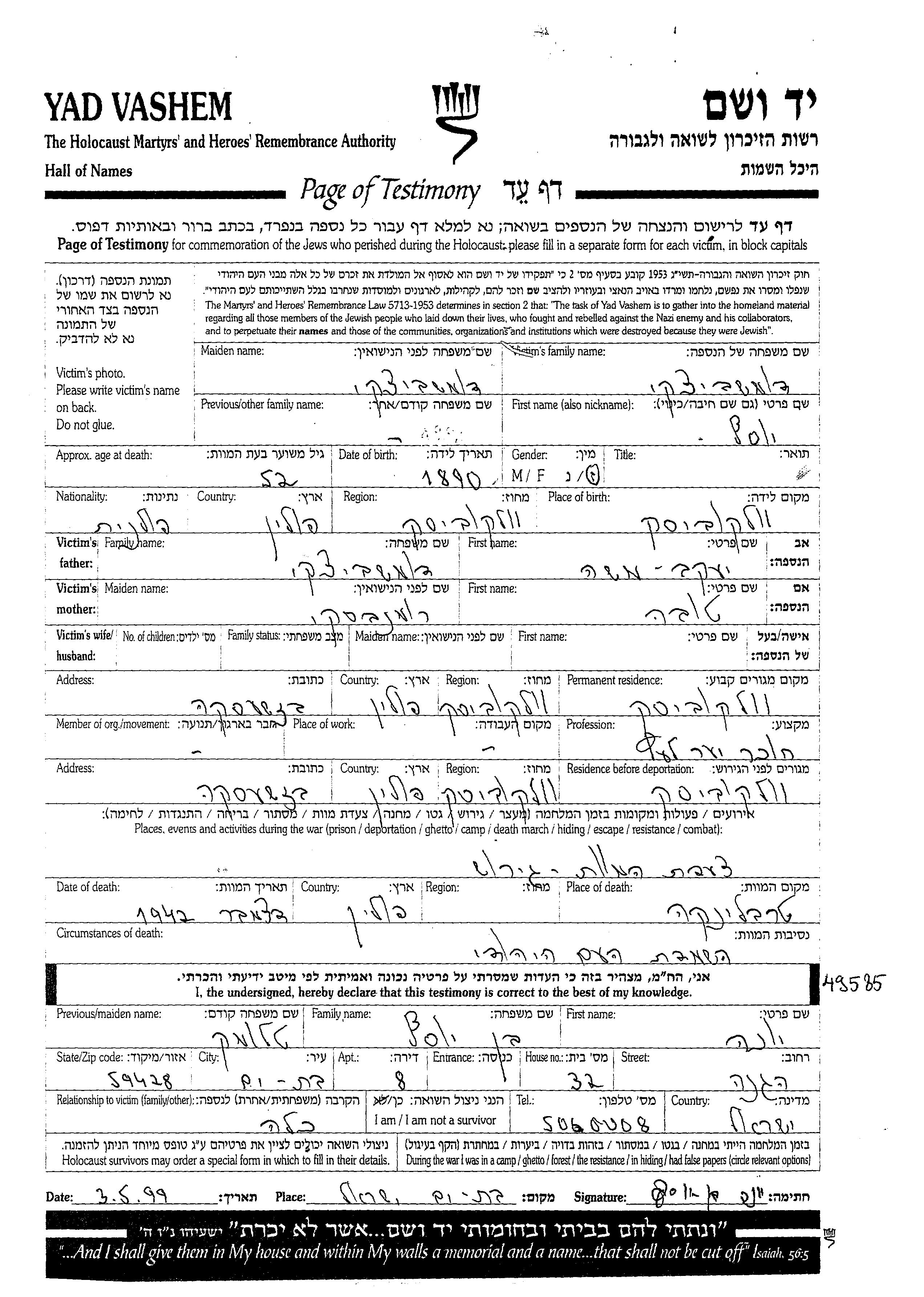 Yosef wurde in der Schoah ermordet. Todesort: Treblinka, Polen im Jahr 12/1942.