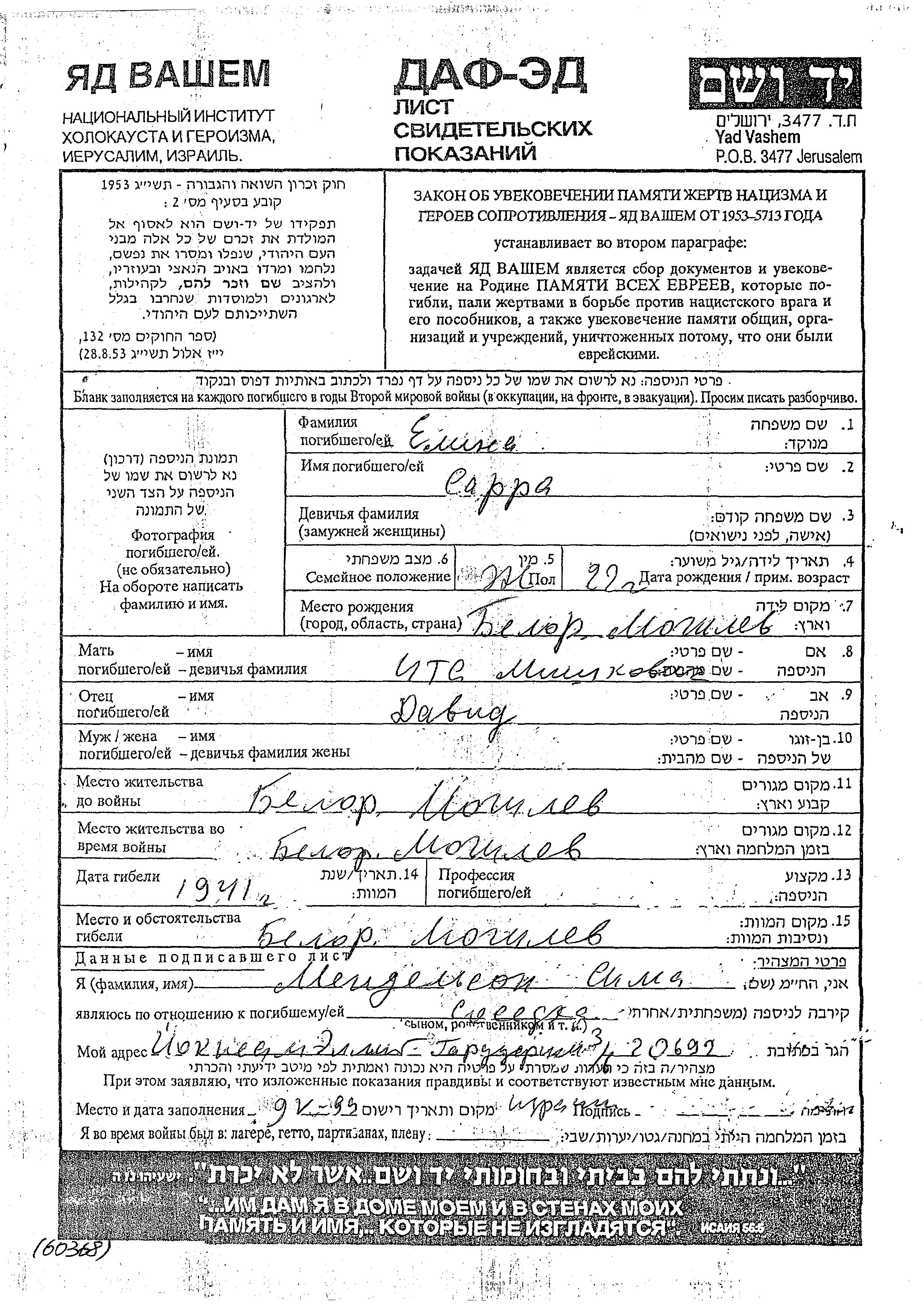 Sarra wurde in der Schoah ermordet. Todesort: Mogilev, Weißrussland (UdSSR) im Jahr 1941.