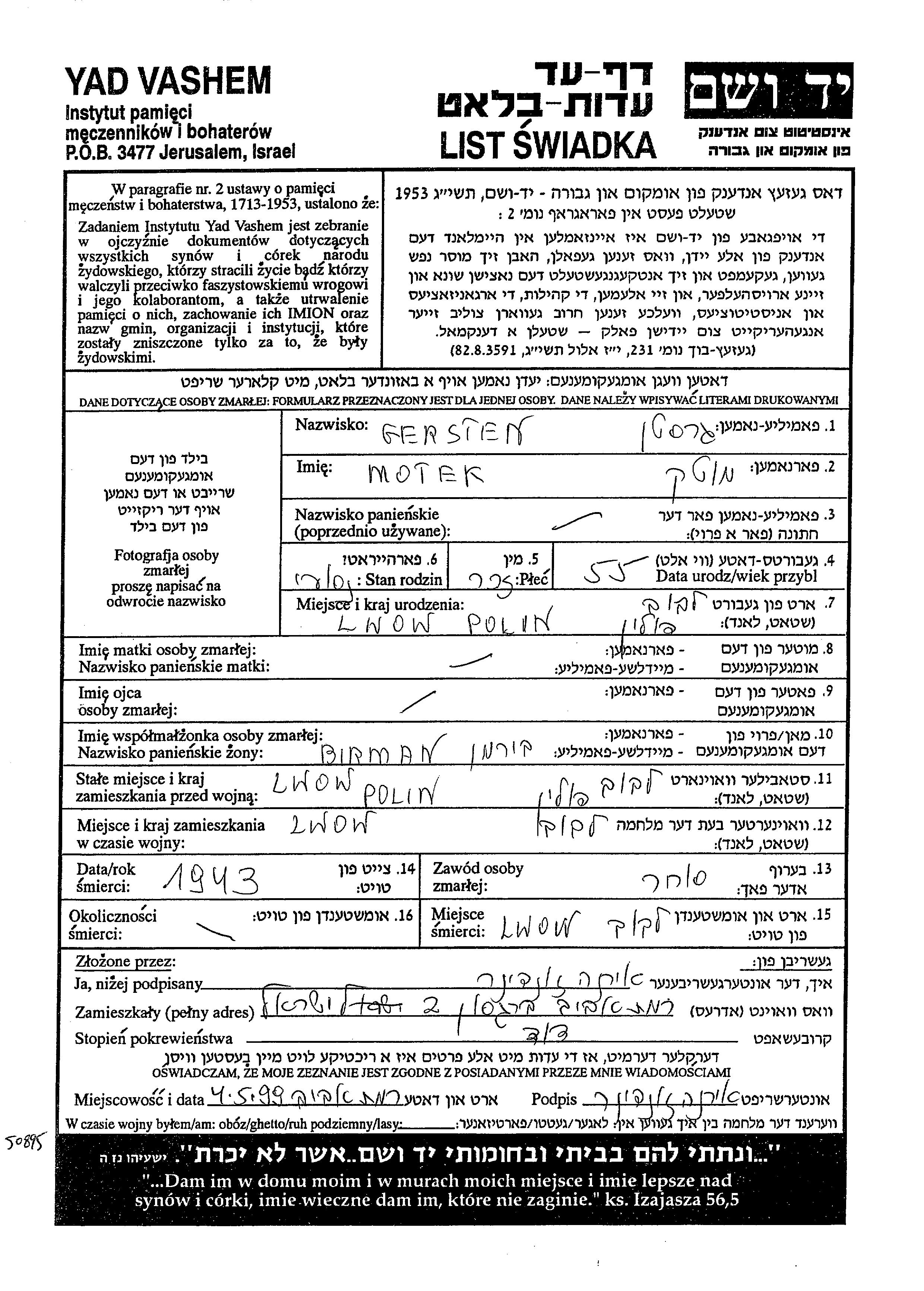 Motek wurde in der Schoah ermordet. Todesort: Lwow, Polen im Jahr 1943.