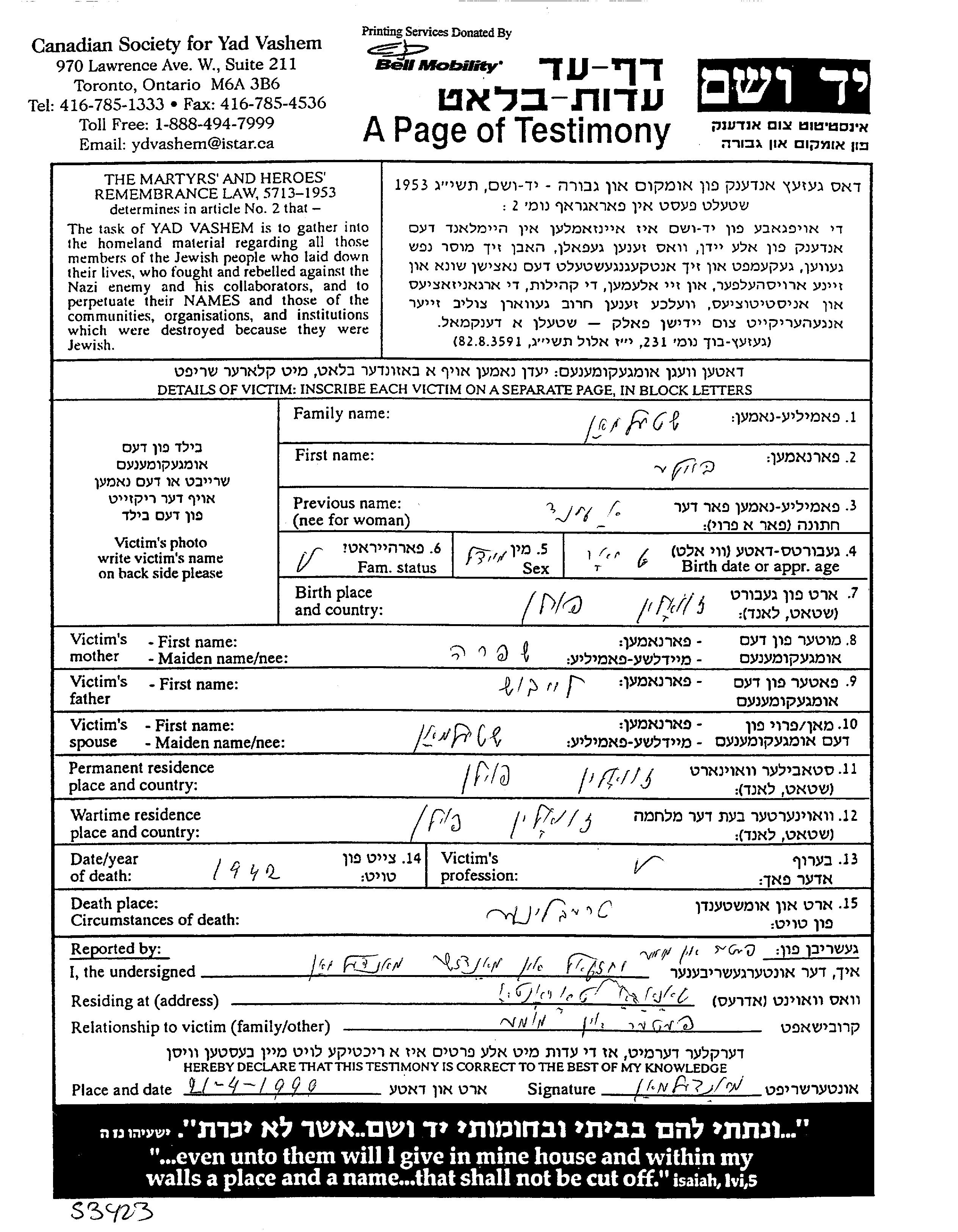 Beile wurde in der Schoah ermordet. Todesort: Treblinka, Polen im Jahr 1942.