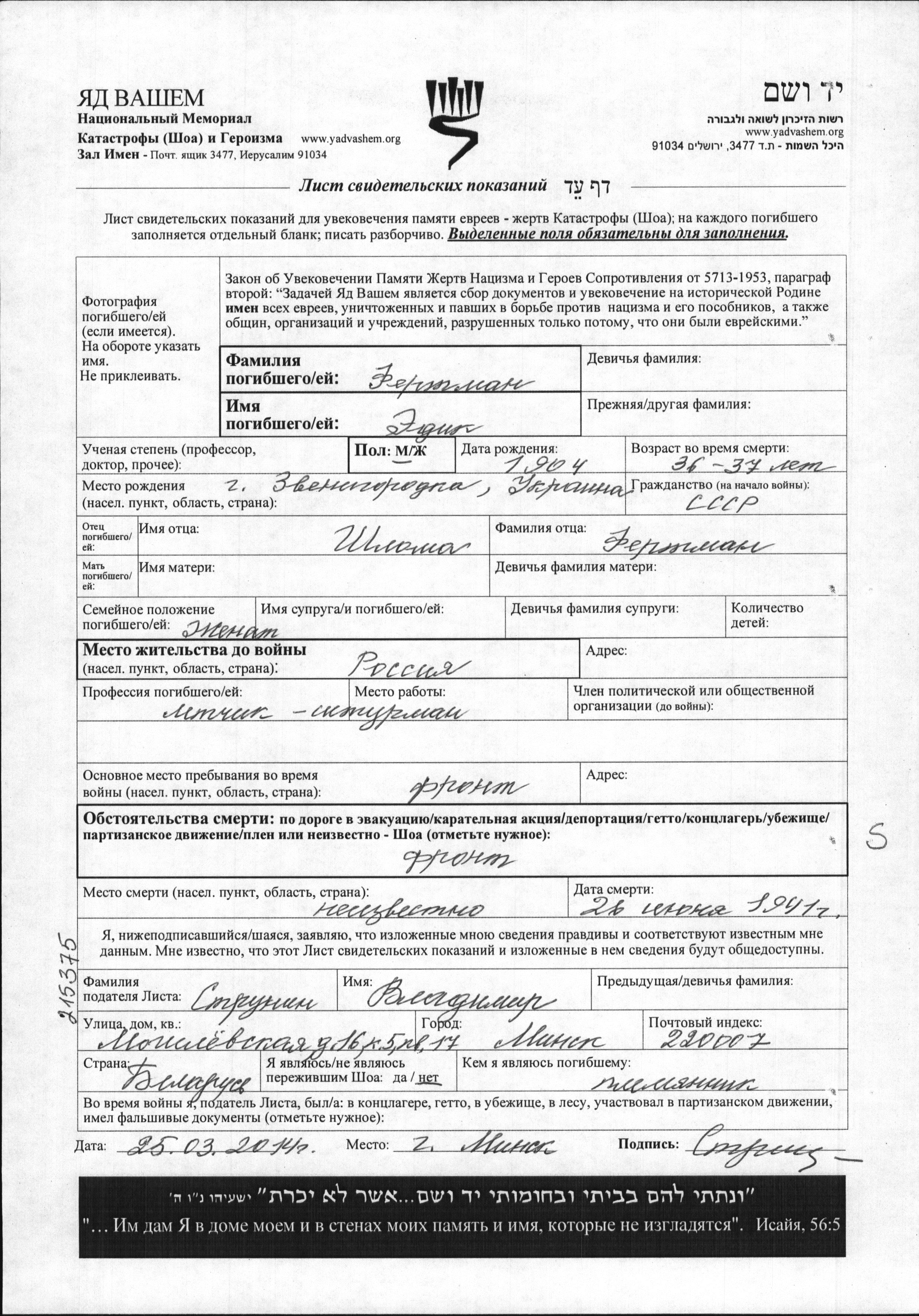 Edik wurde in der Schoah ermordet. Todesort: unbekannt im Jahr 26/06/1941.