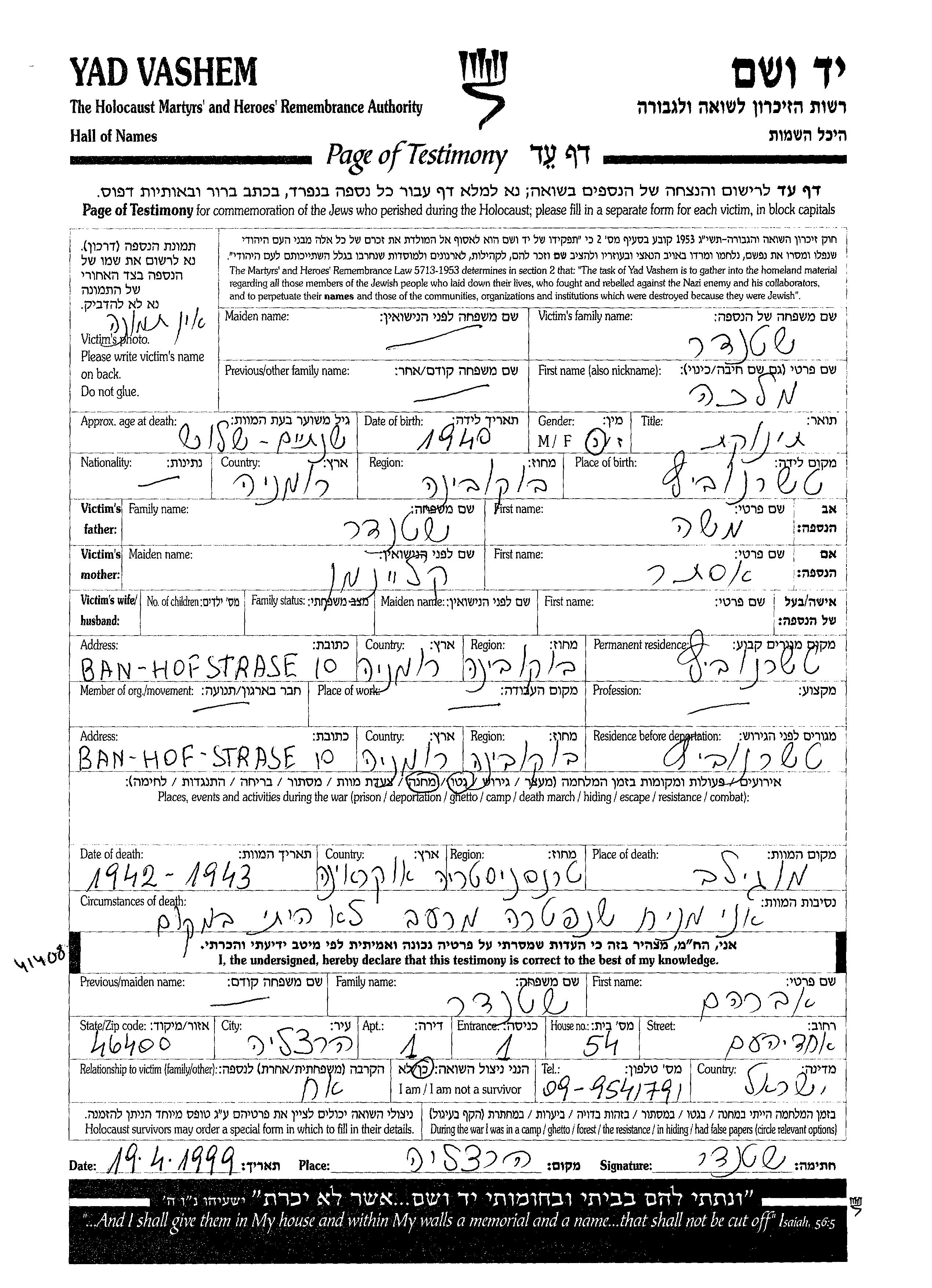 Malka wurde in der Schoah ermordet. Todesort: Mogilev Podolski, Ukraine (UdSSR) im Jahr 1942.