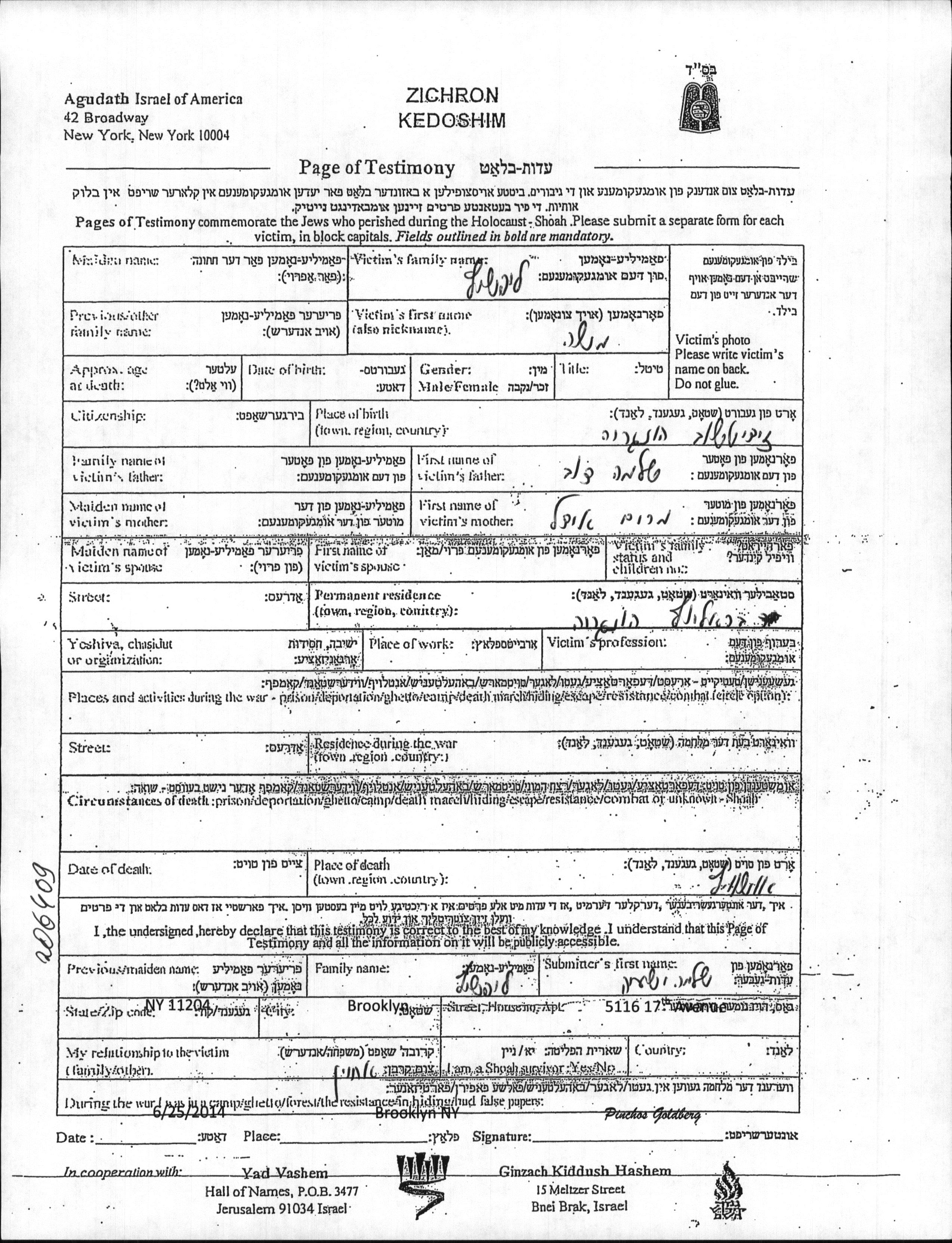 Moshe wurde in der Schoah ermordet. Todesort: Auschwitz, Polen.