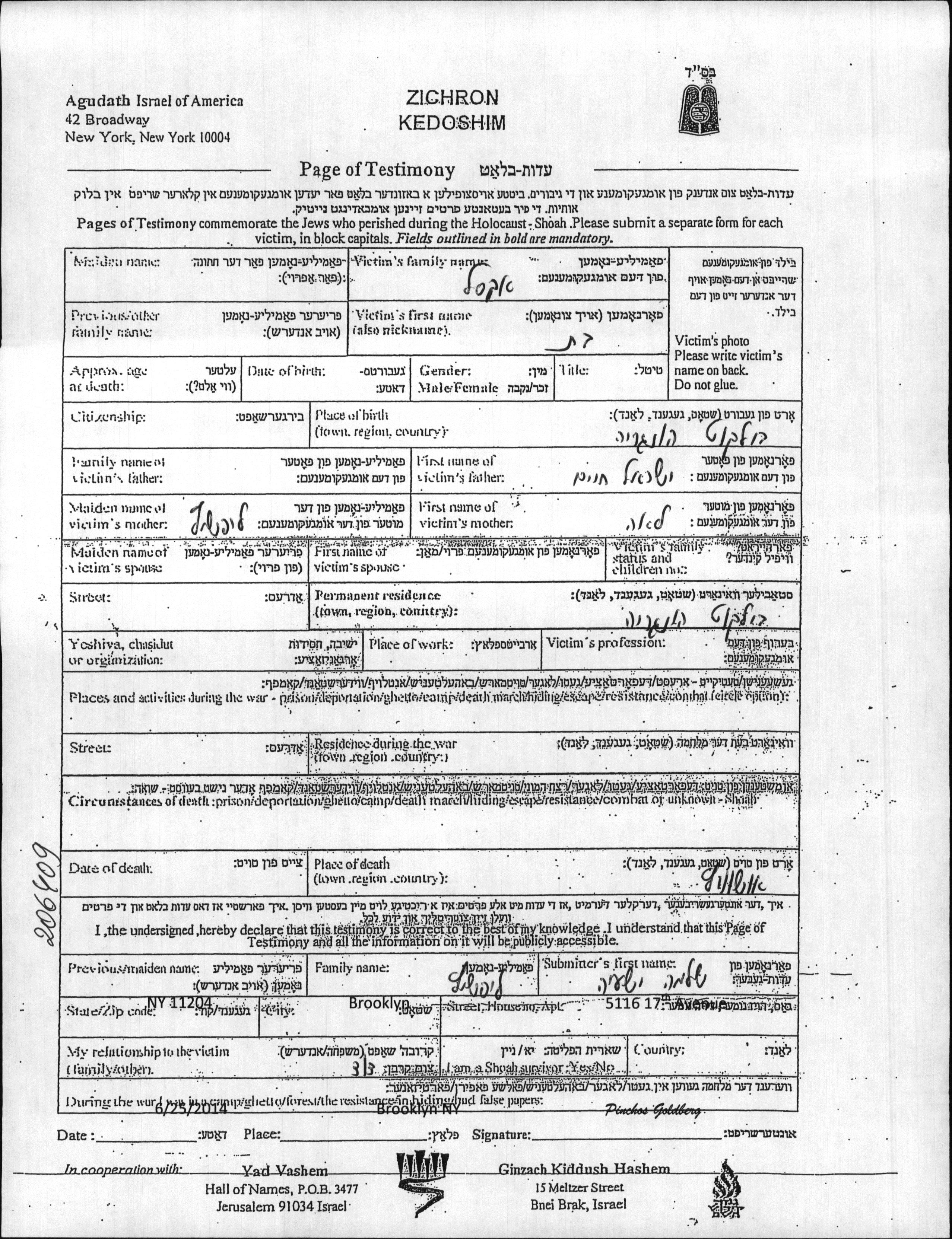 Vorname unbekannt Aksel wurde in Undeciphered Place, Ungarn geboren. Sie war die Tochter von Yisrael Chaim und Lea, geb. Lipshitz. Vor dem Zweiten Weltkrieg lebte sie in Undeciphered Place, Ungarn.