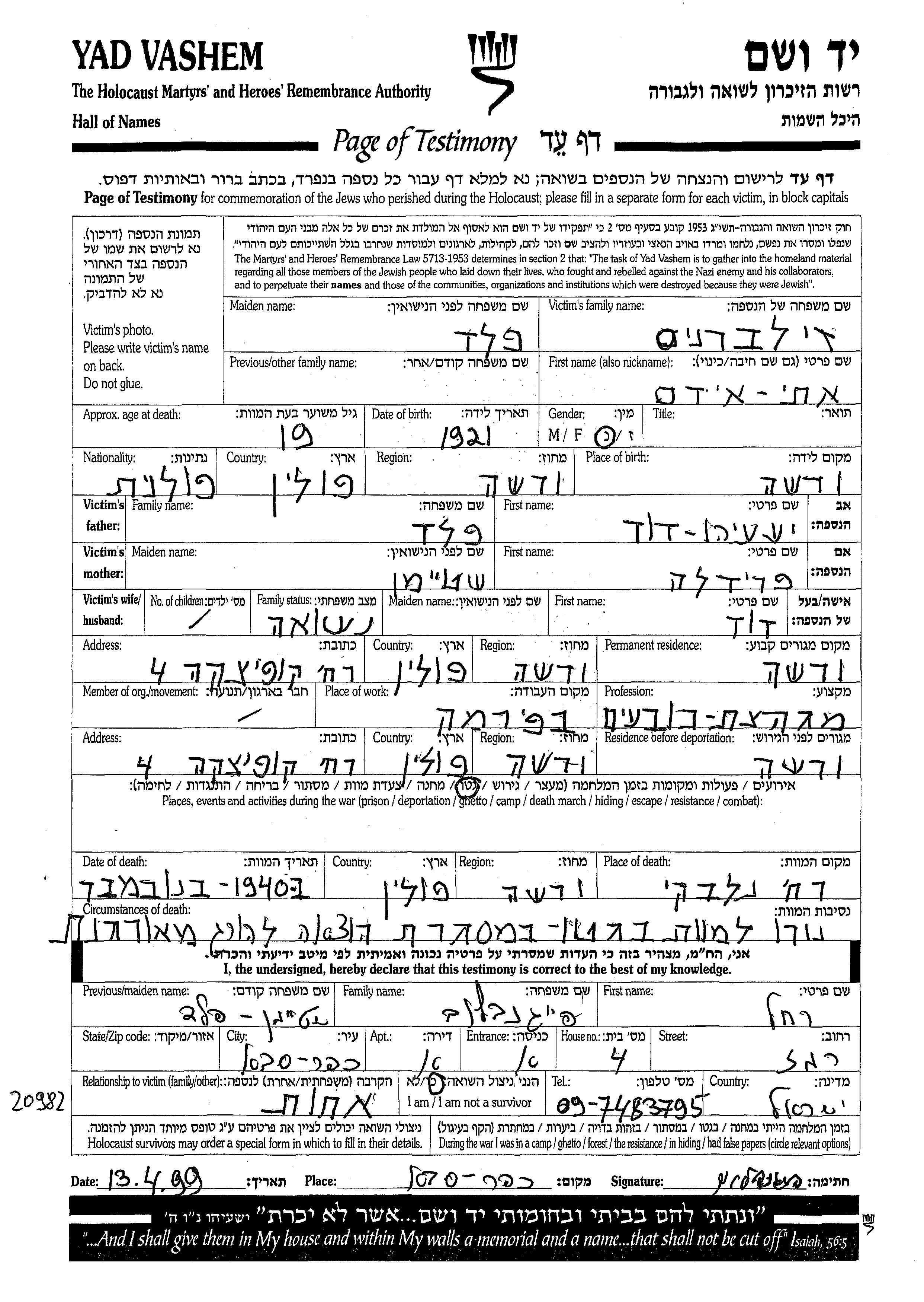 Ester Yehudit wurde in der Schoah ermordet. Todesort: Warszawa, Polen im Jahr 11/1940.