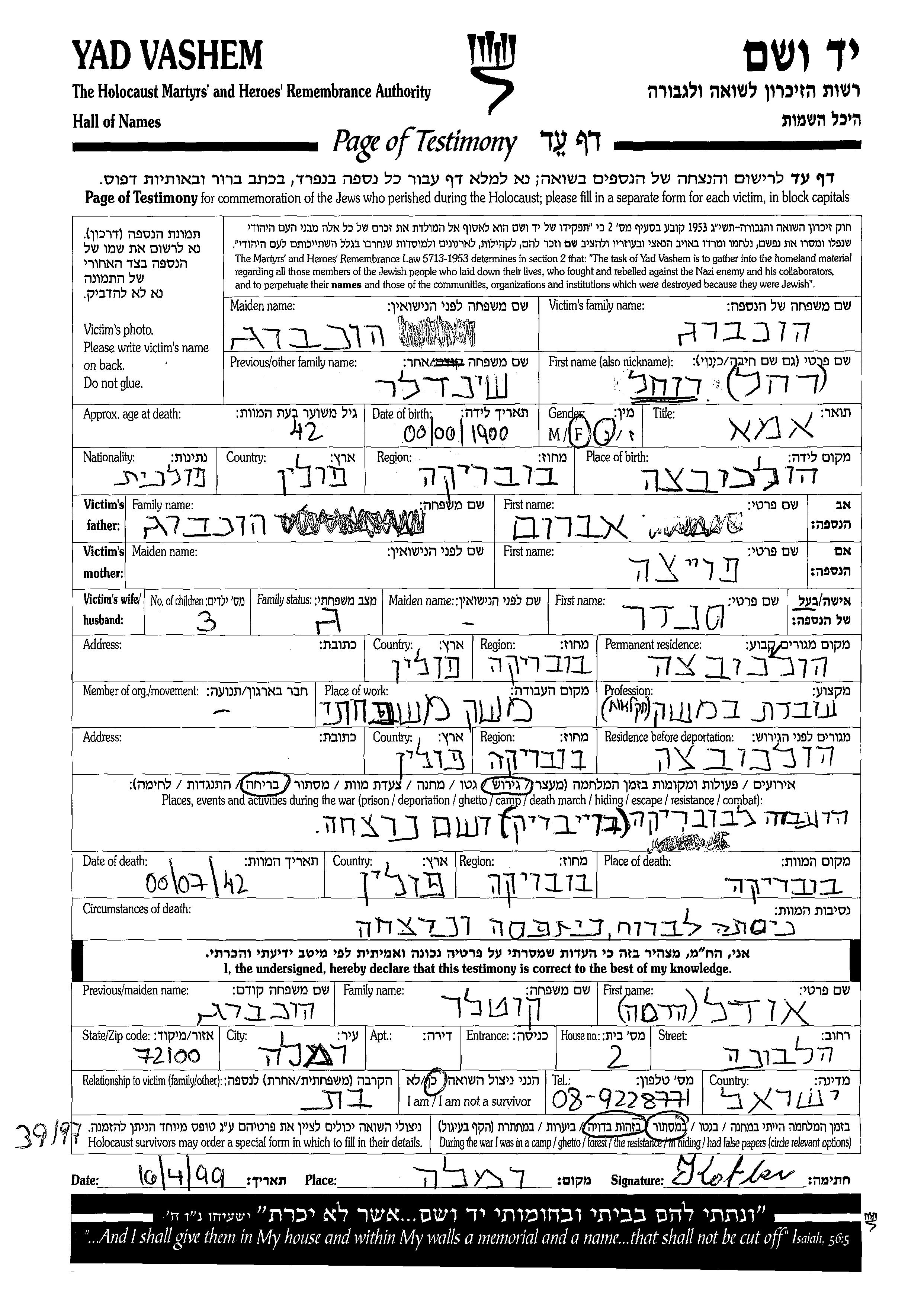 Rakhel wurde in der Schoah ermordet. Todesort: Bobrika, Polen im Jahr 07/1942.