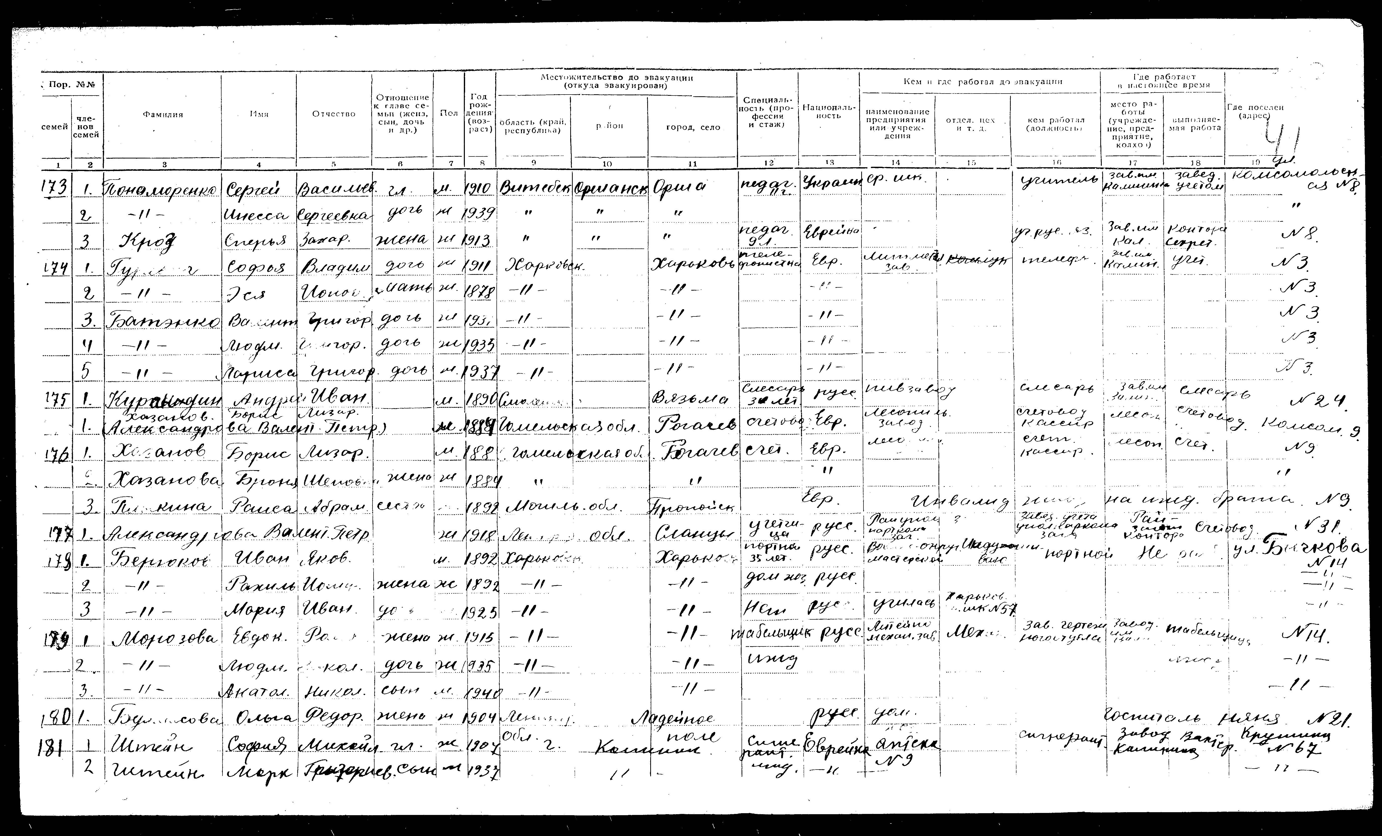 Khazanov Boris 1884 Rogachev, Weißrussland (UdSSR) Evakuiertenliste