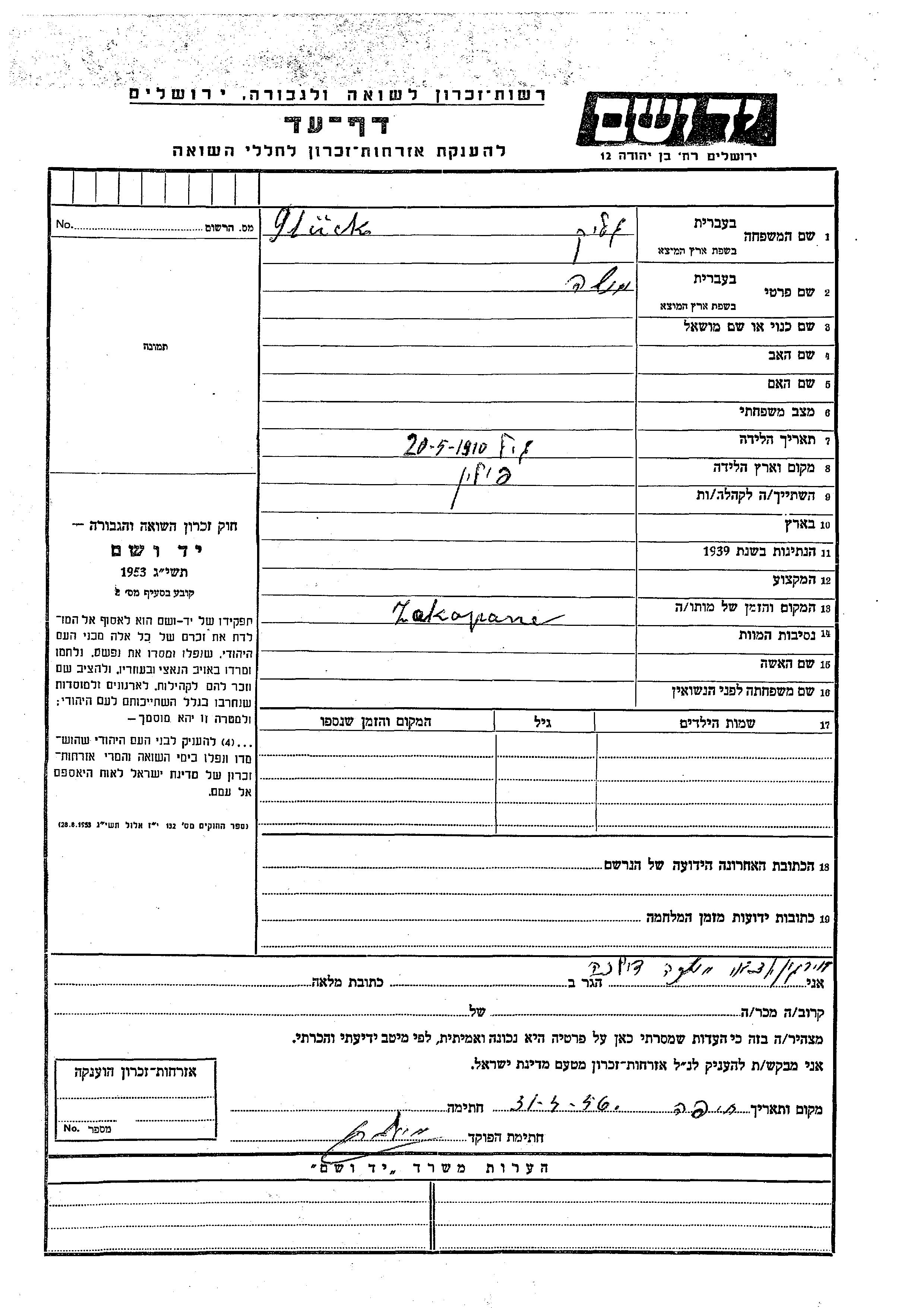 Moshe wurde in der Schoah ermordet. Todesort: Zakopane, Polen.