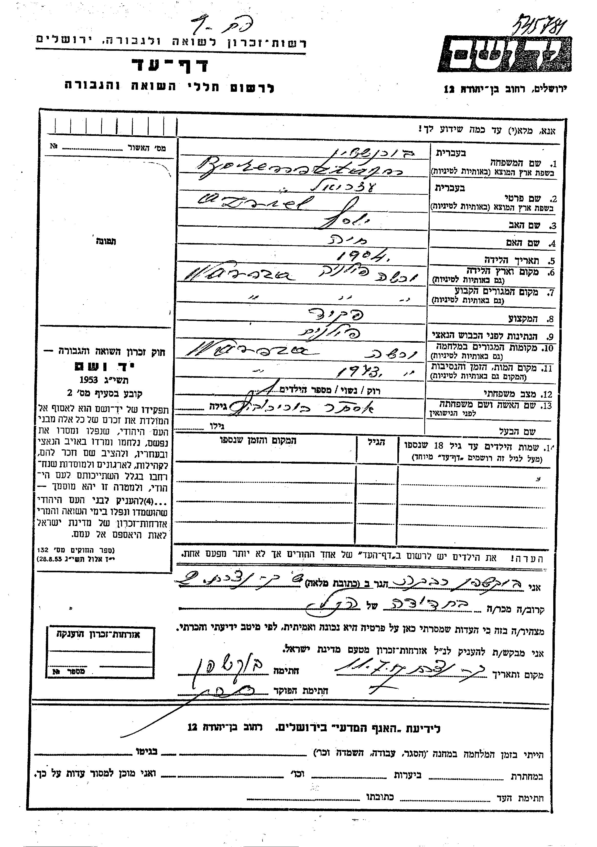 Azriel Borensztajn wurde im Jahr 1904 in Warszawa, Polen geboren. Er war der Sohn von Yosef und Khaia. Er war Angestellte/-r und mit Ester, geb. Burikhovitz Verheiratet. Vor dem Zweiten Weltkrieg lebte er in Warszawa, Polen. Während des Krieges war er in Warszawa, Polen.
