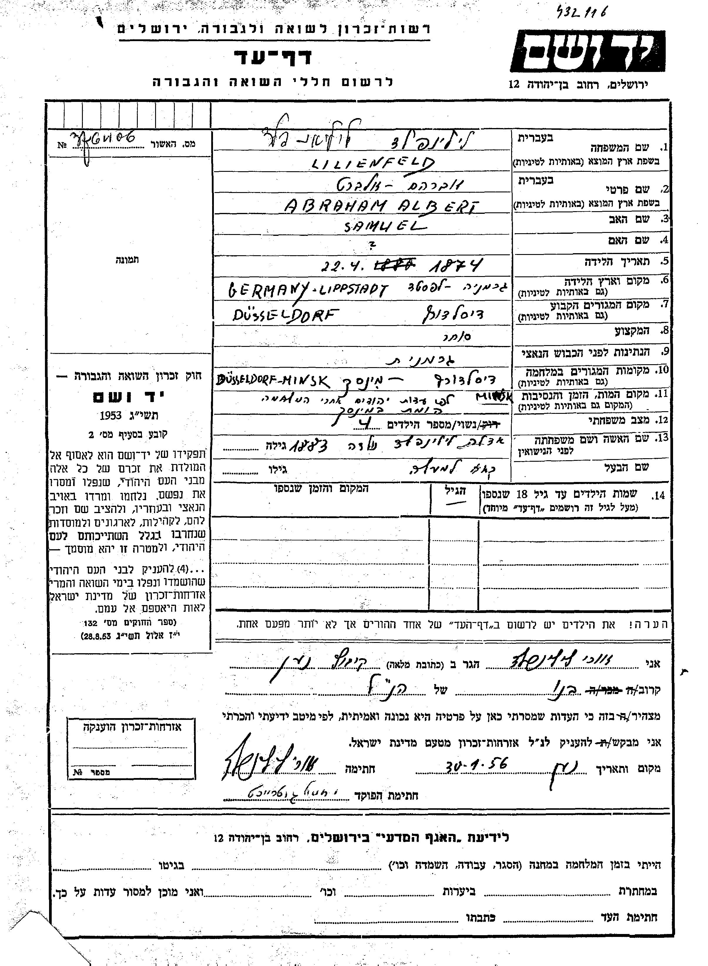 Abraham Albert wurde in der Schoah ermordet. Todesort: Minsk, Weißrussland (UdSSR).