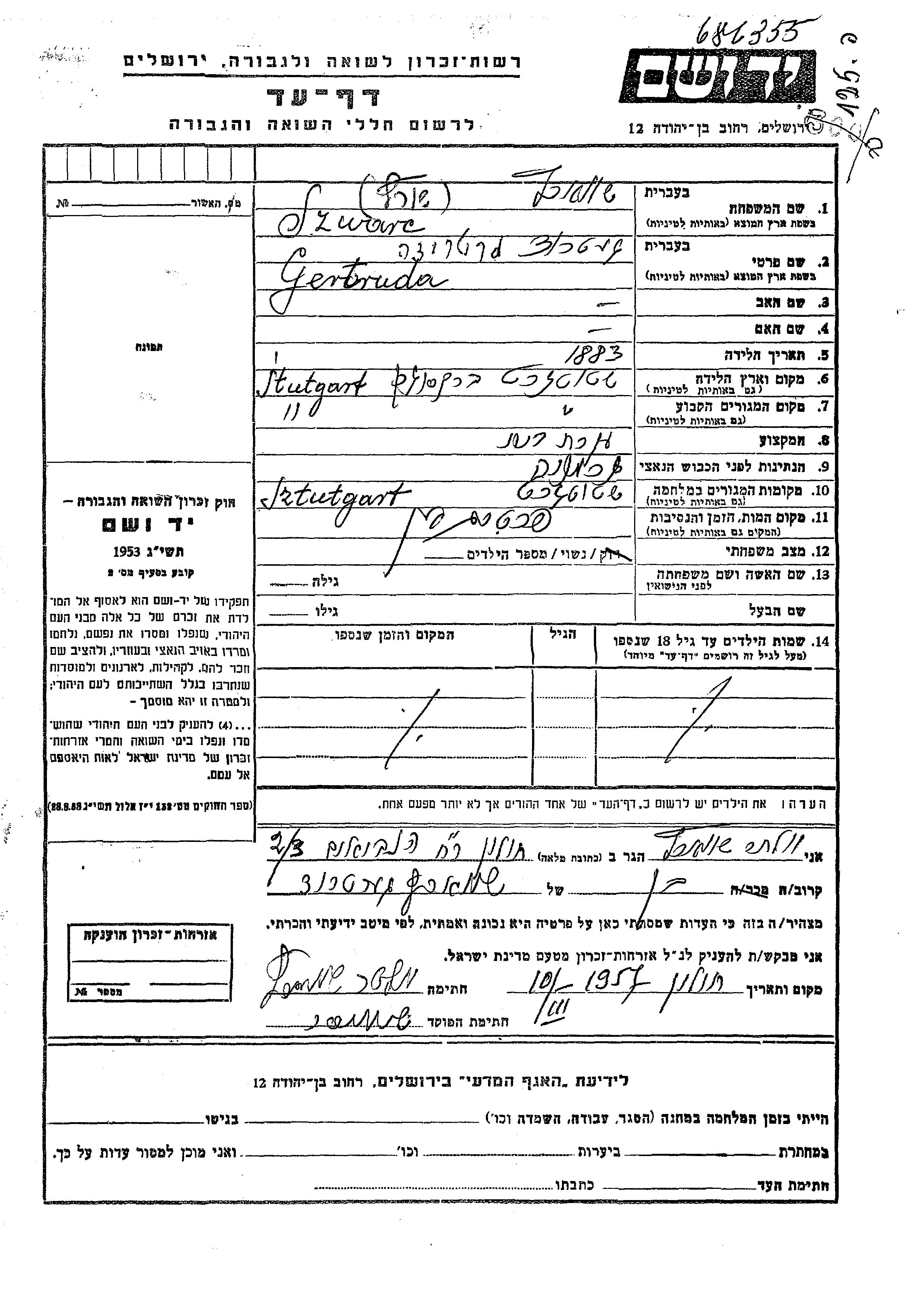 Suche nach einem Todesjahr im Zeitraum der Holocaust: 1933 bis 1945. Bitte wählen Sie 'Exakt' im Auswahlmenü, um nur nach einem einzelnen Jahr zu suchen, alternativ können Sie die flexibleren Optionen '+/- 2 Jahre' oder '+/- 5 Jahre' wählen.