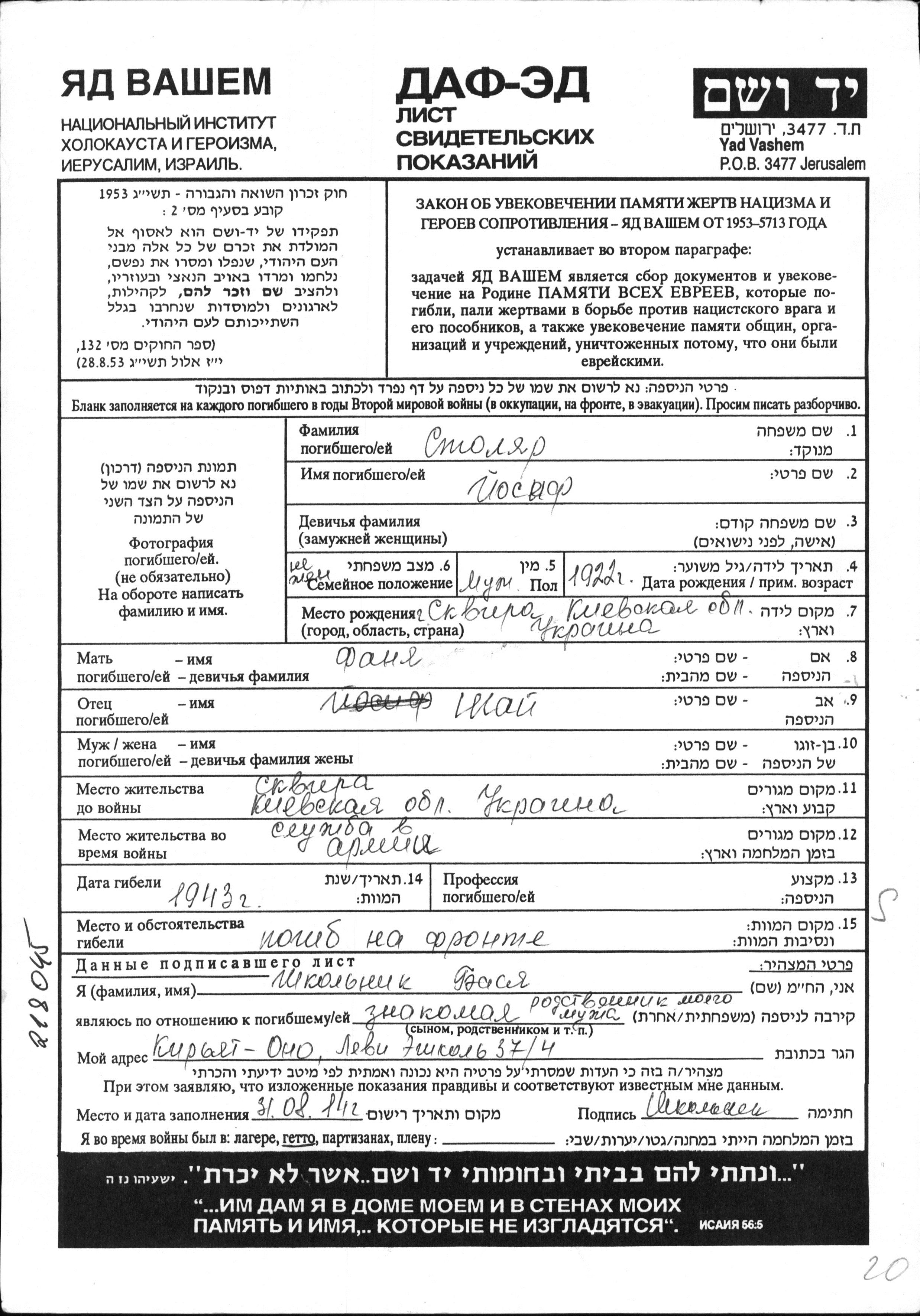 Unter den jüdischen Soldaten, die im Zweiten Weltkrieg kämpften und ums Leben kamen, vor allem in der Roten Armee, sind zehntausende als sie in Kriegsgefangenschaft gerieten als Juden ausgesondert und ermordet worden.