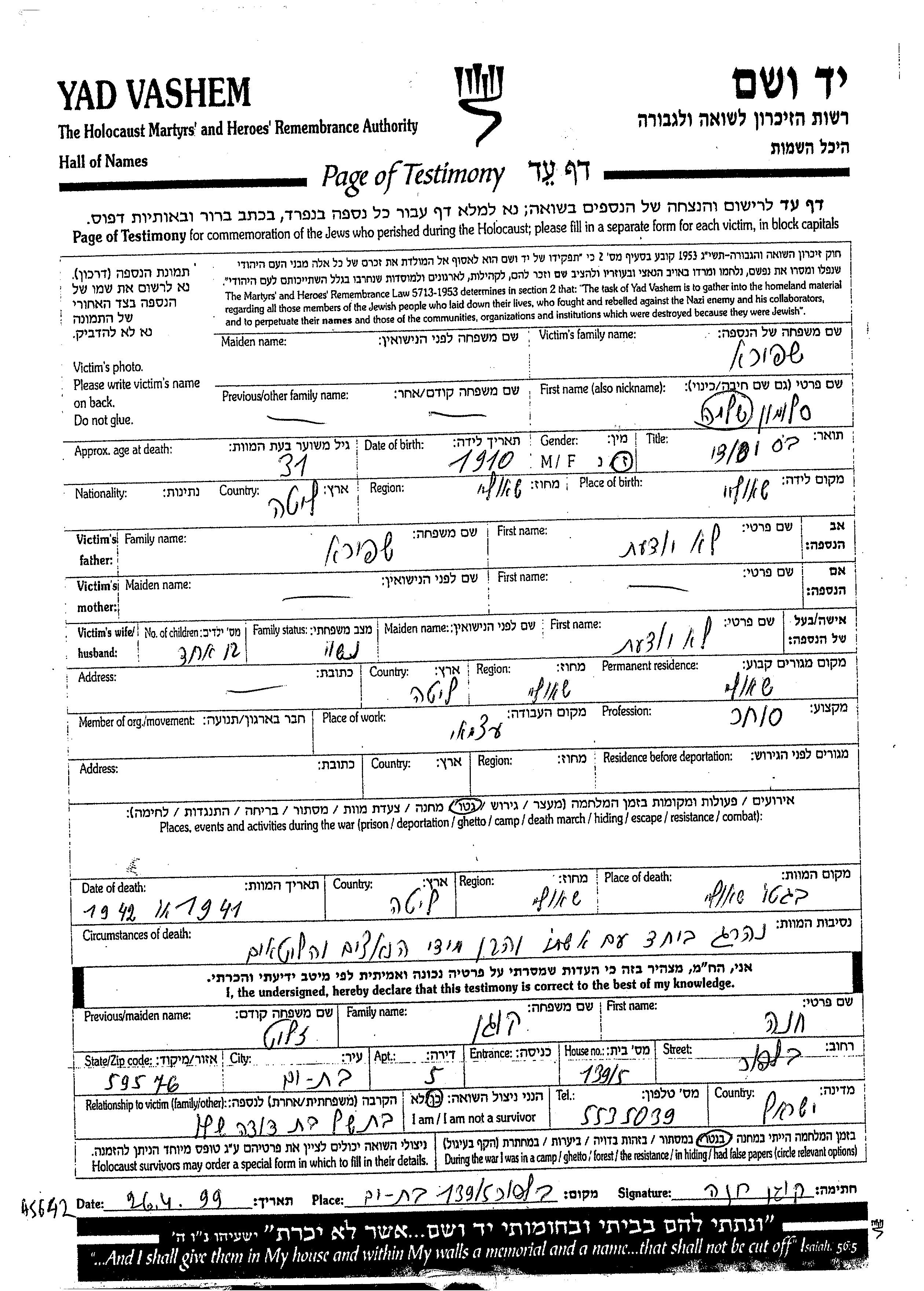 Salomon Shapira wurde im Jahr 1910 in Sauliai, Litauen geboren. Er war Kaufmann/-frau und Verheiratet. Vor dem Zweiten Weltkrieg lebte er in Sauliai, Litauen.