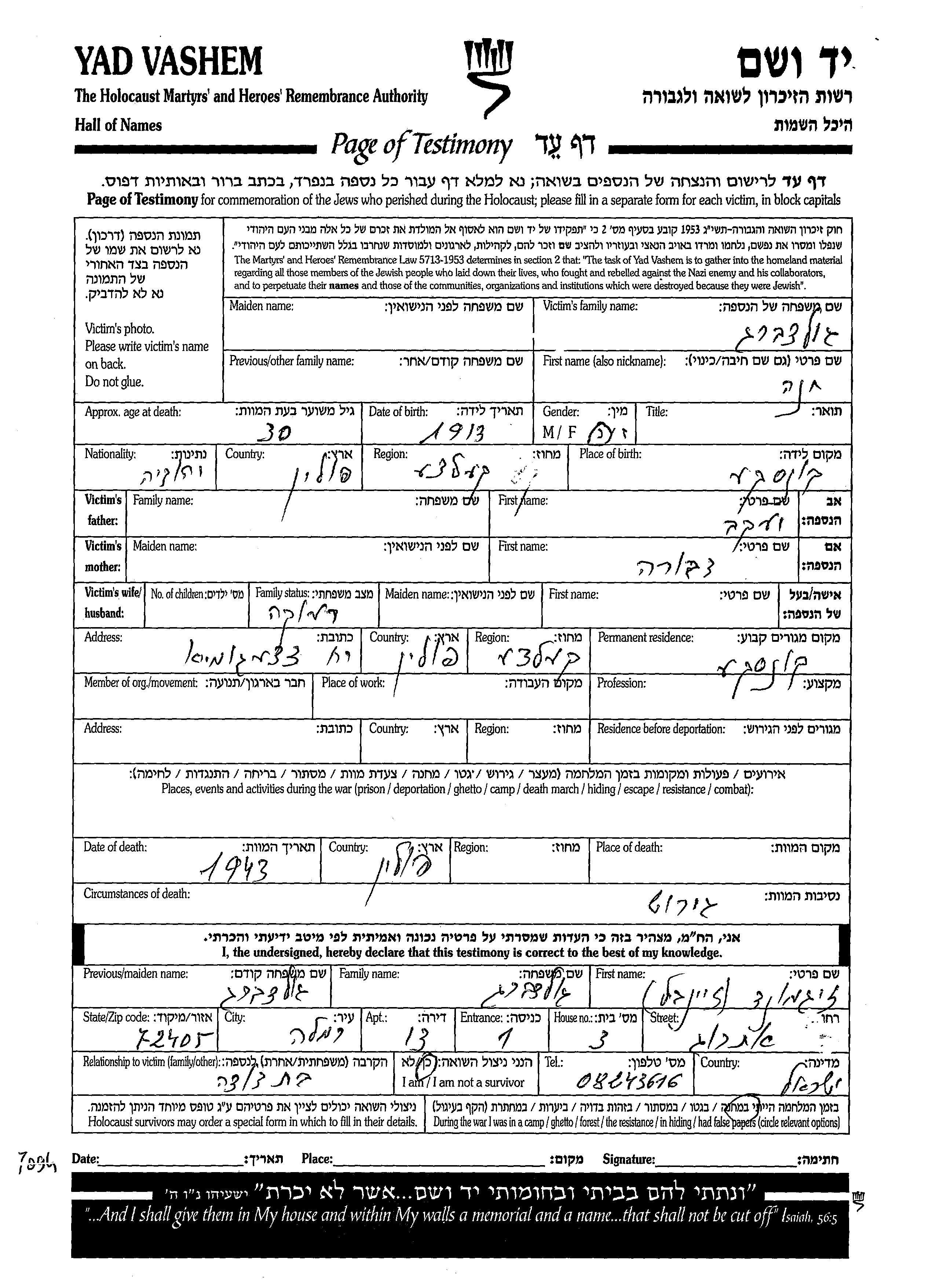 Khana wurde in der Schoah ermordet. Todesort: Polen im Jahr 1943.