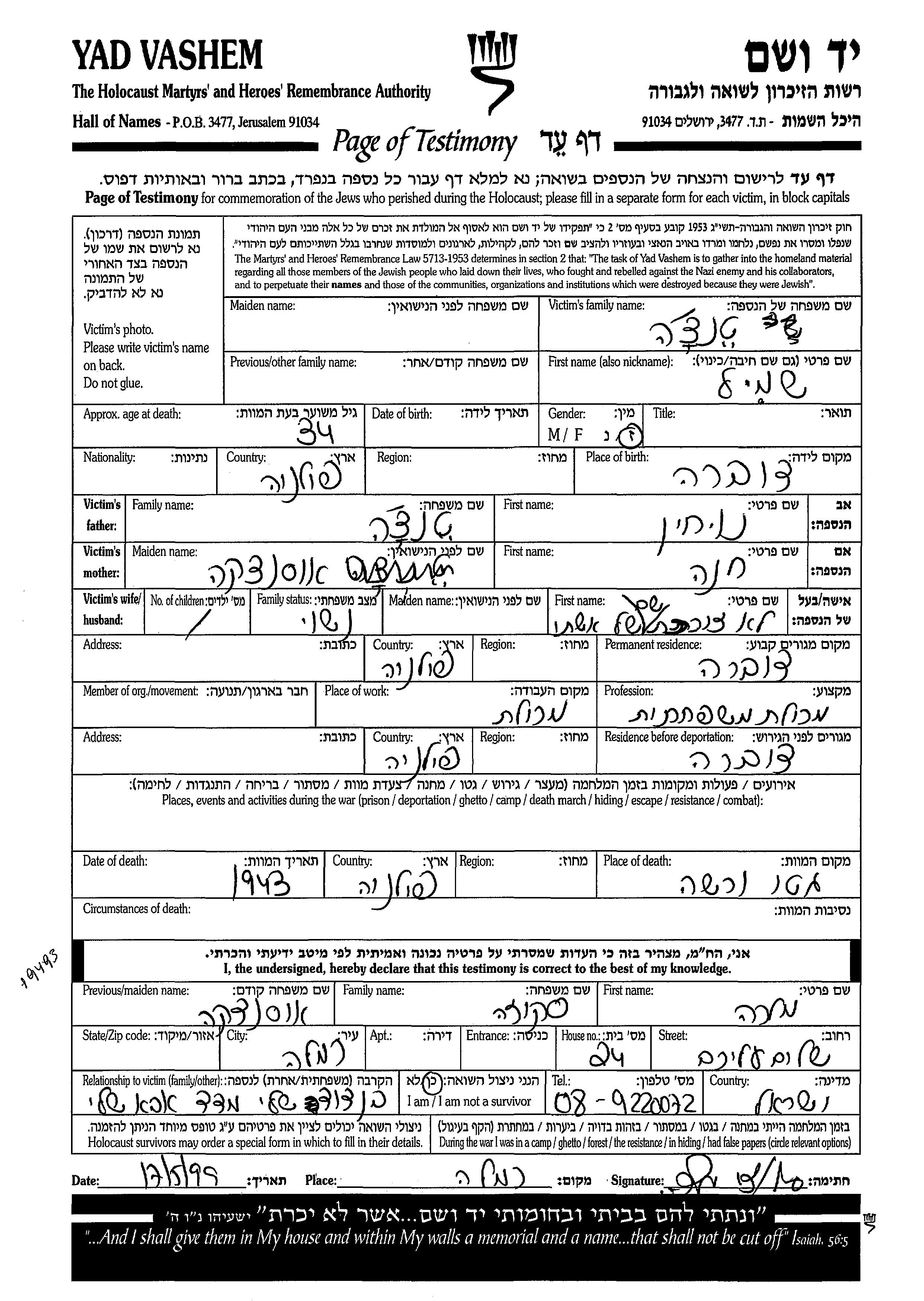 Shmil wurde in der Schoah ermordet. Todesort: Warszawa, Polen im Jahr 1943.
