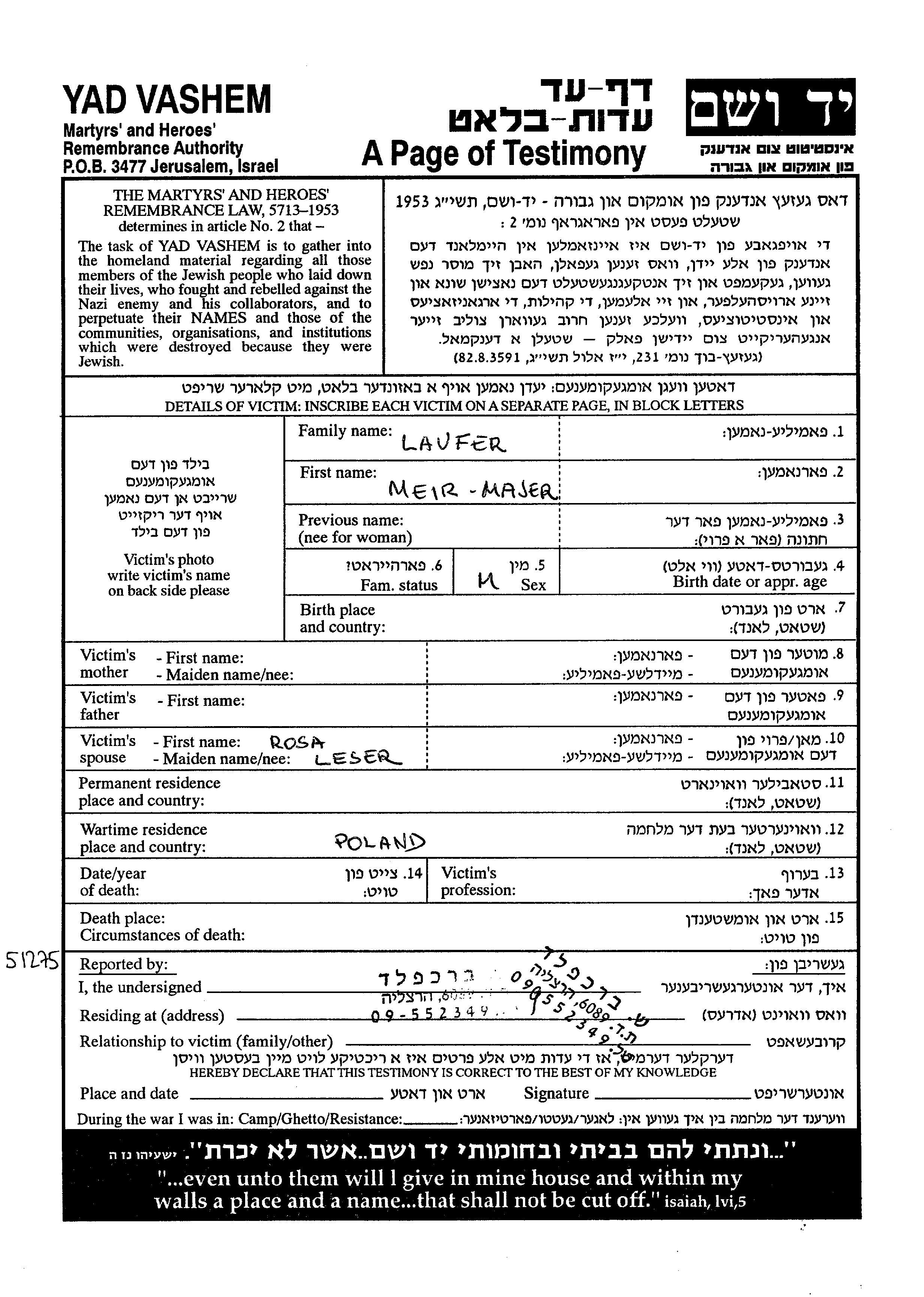 Meir Laufer. Er war Verheiratet. Während des Krieges war er in Polen.