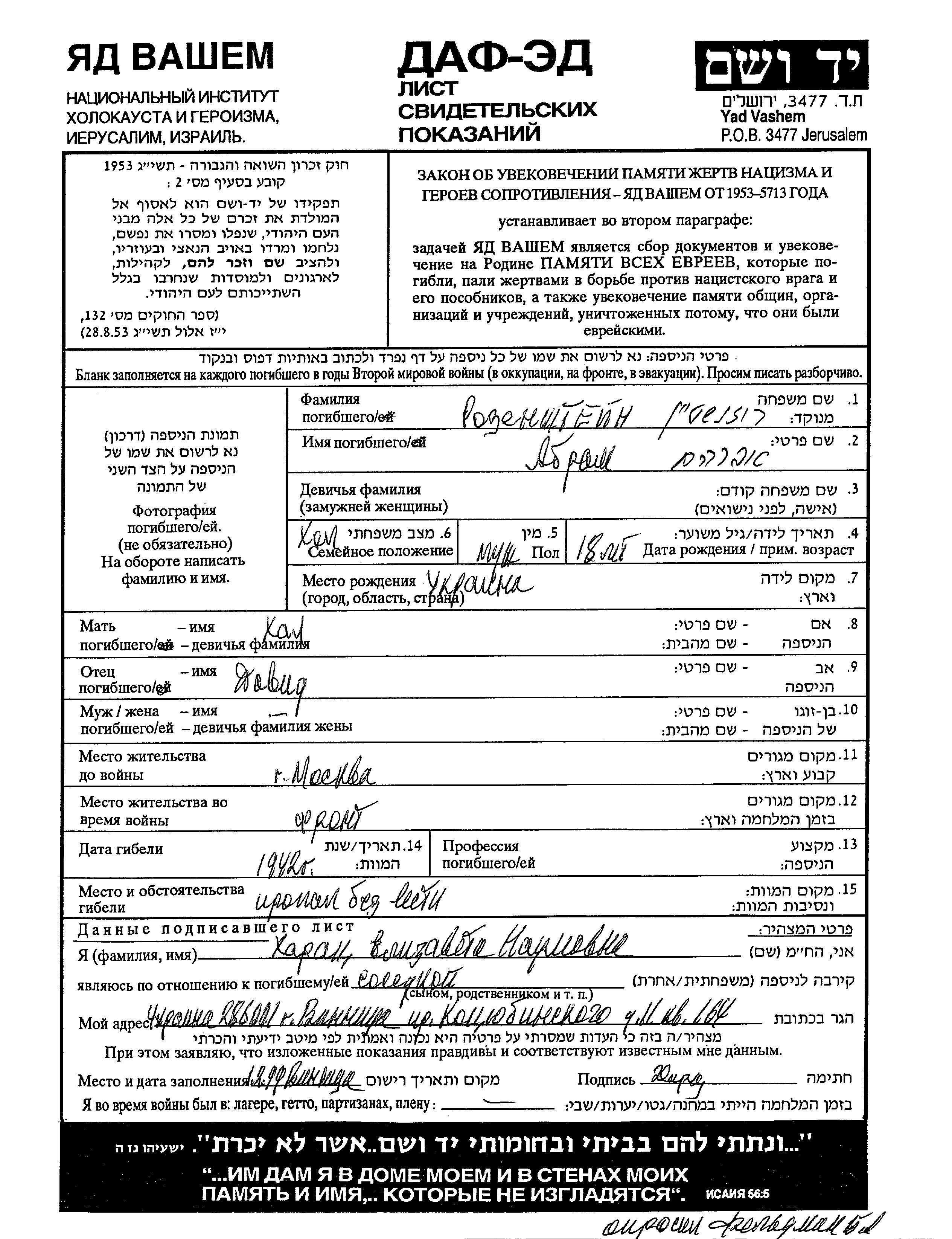 Abram wurde in der Schoah ermordet. Todesort: Russland (UdSSR) im Jahr 1942.