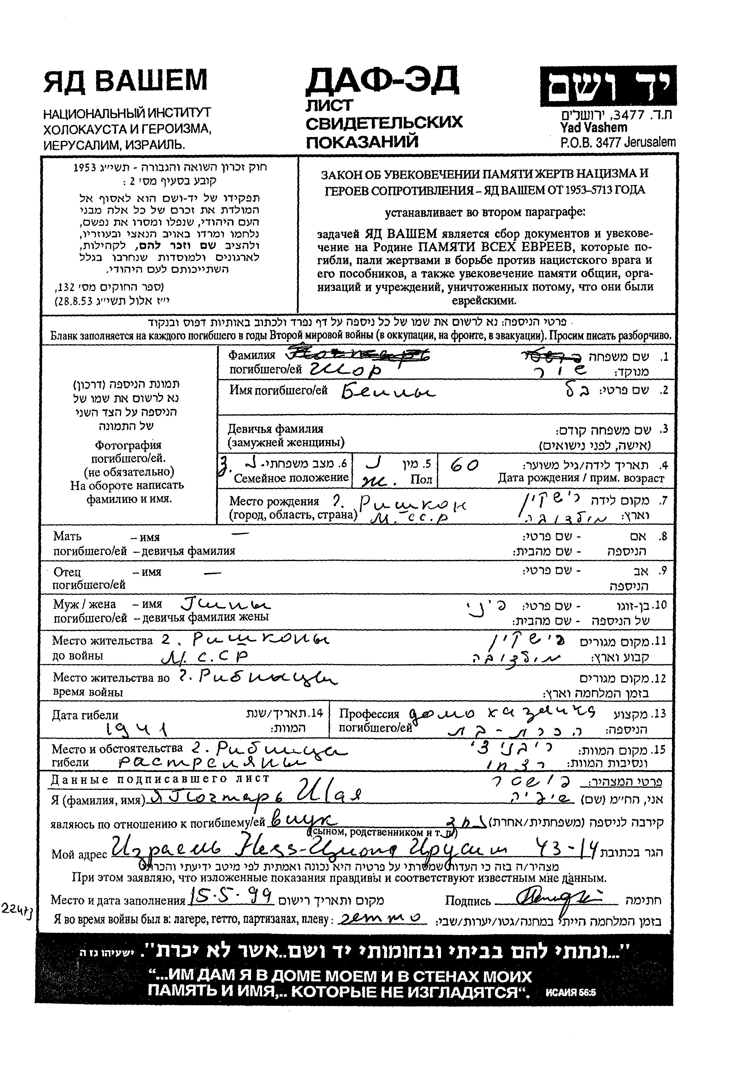 Belly wurde in der Schoah ermordet. Todesort: Rybnica, Tschechoslowakei im Jahr 1941.