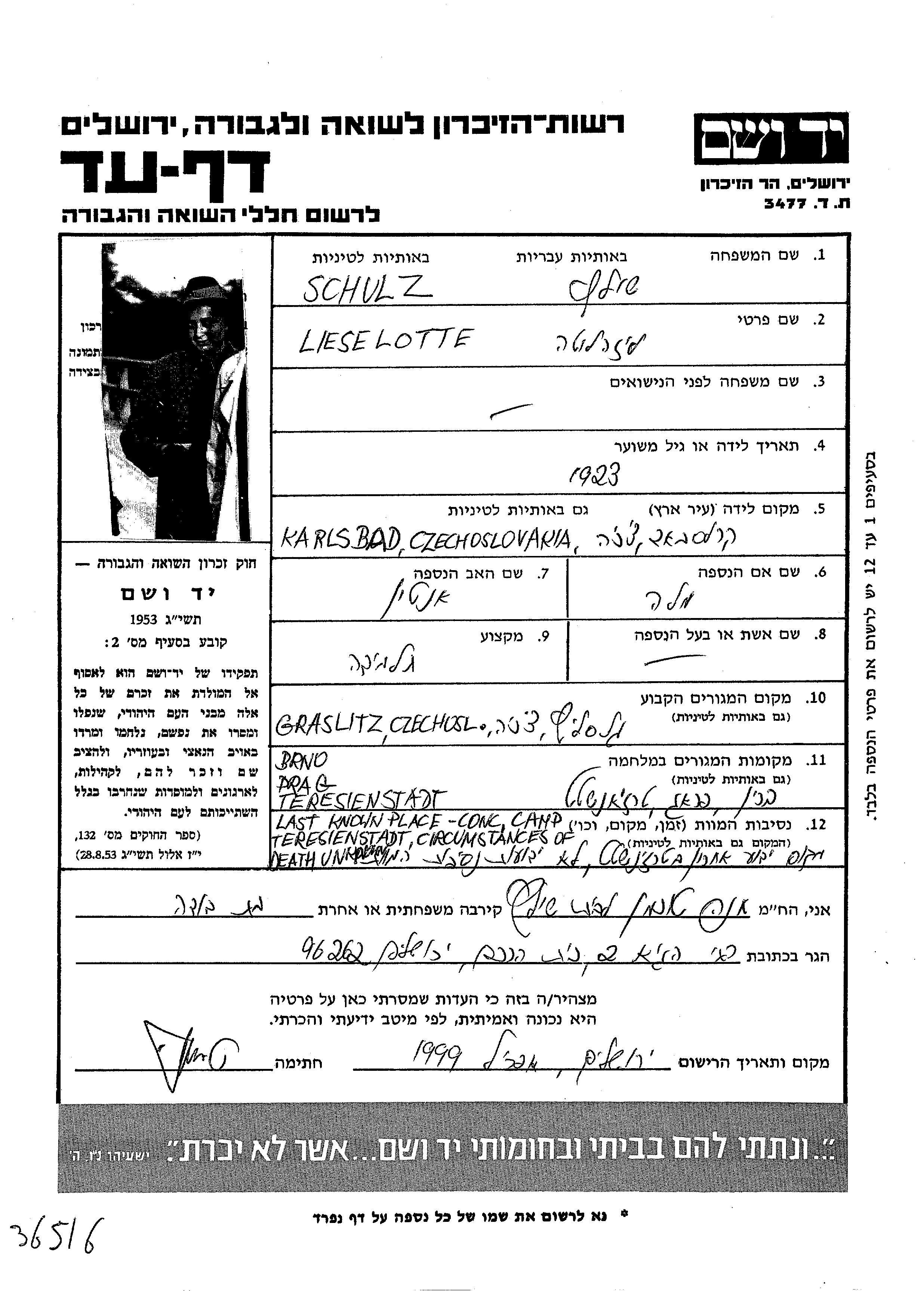 Liese Lotte wurde in der Schoah ermordet. Todesort: Theresienstadt, Tschechoslowakei.