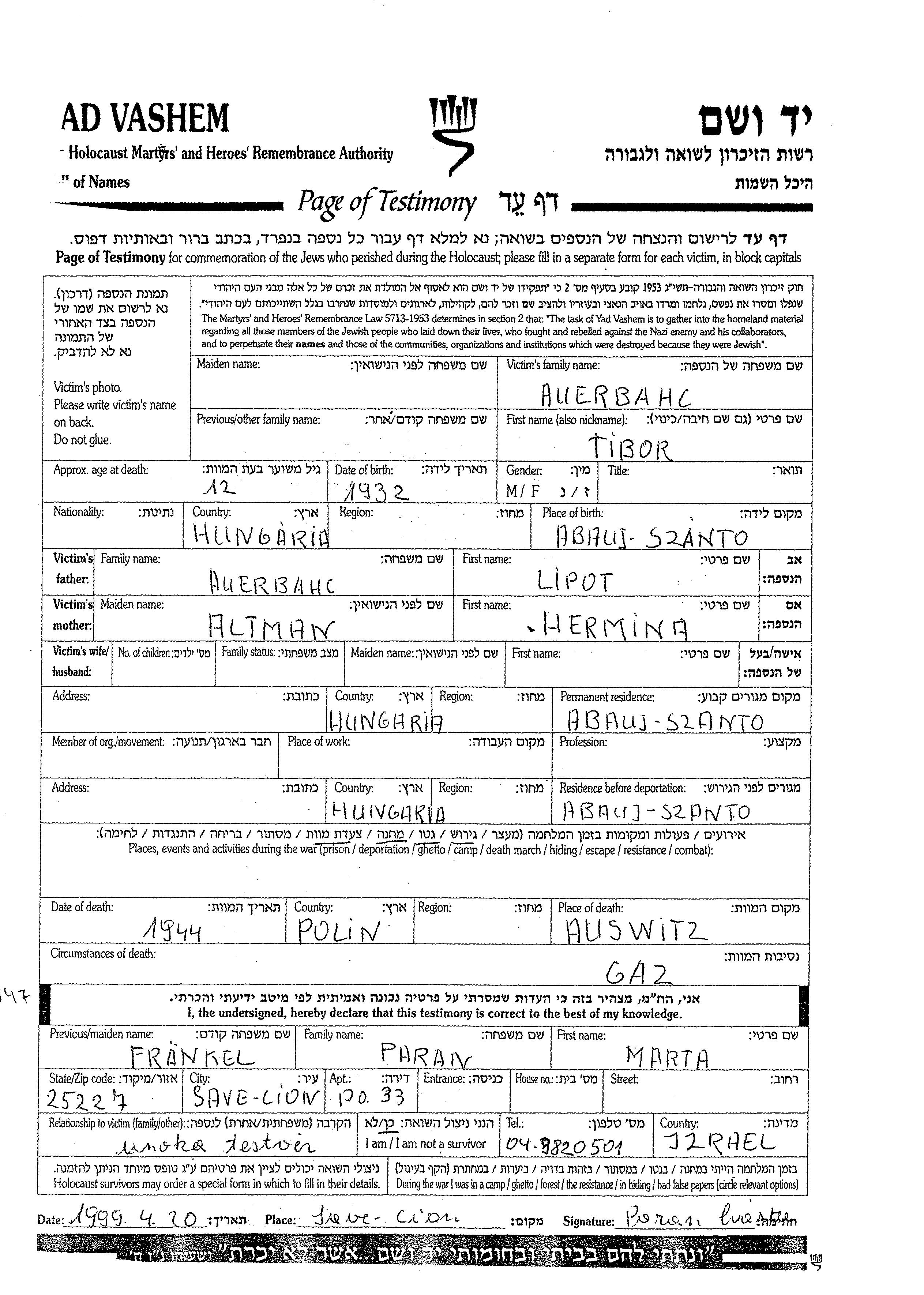 Stadt/Ortschaft oder Lager/Ghetto oder Bezirk/Region oder Land