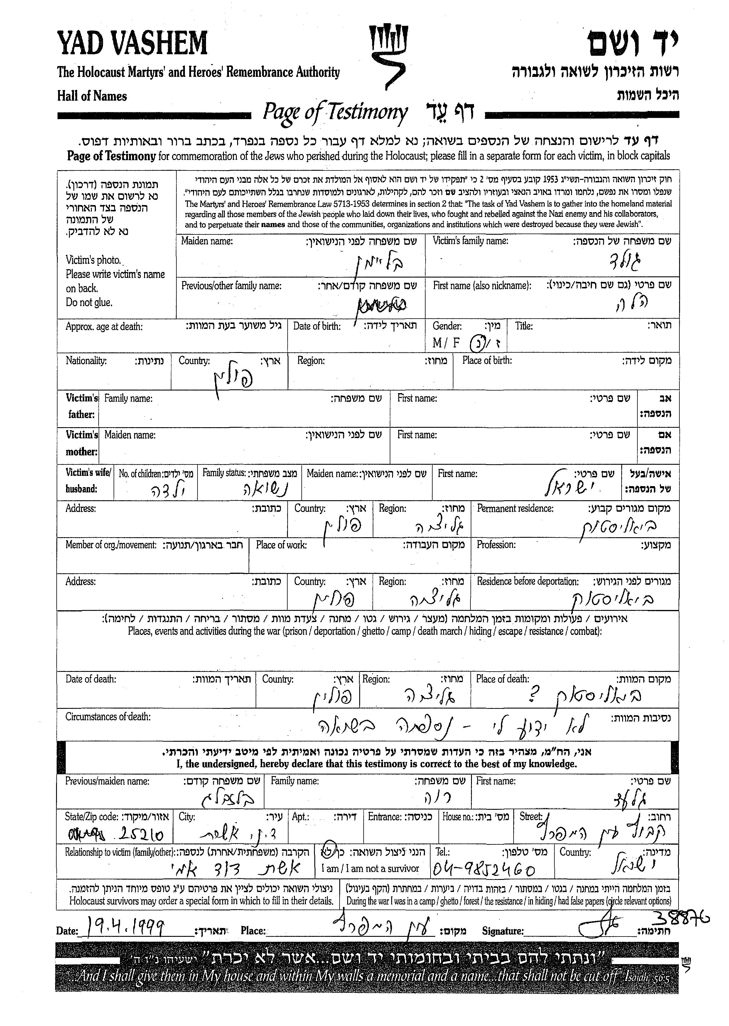 Hela Gold, geb. Bleiman wurde in Polen geboren. Sie war mit Yisrael Verheiratet. Vor dem Zweiten Weltkrieg lebte sie in Bialistok, Polen. Während des Krieges war sie in Bialistok, Polen.