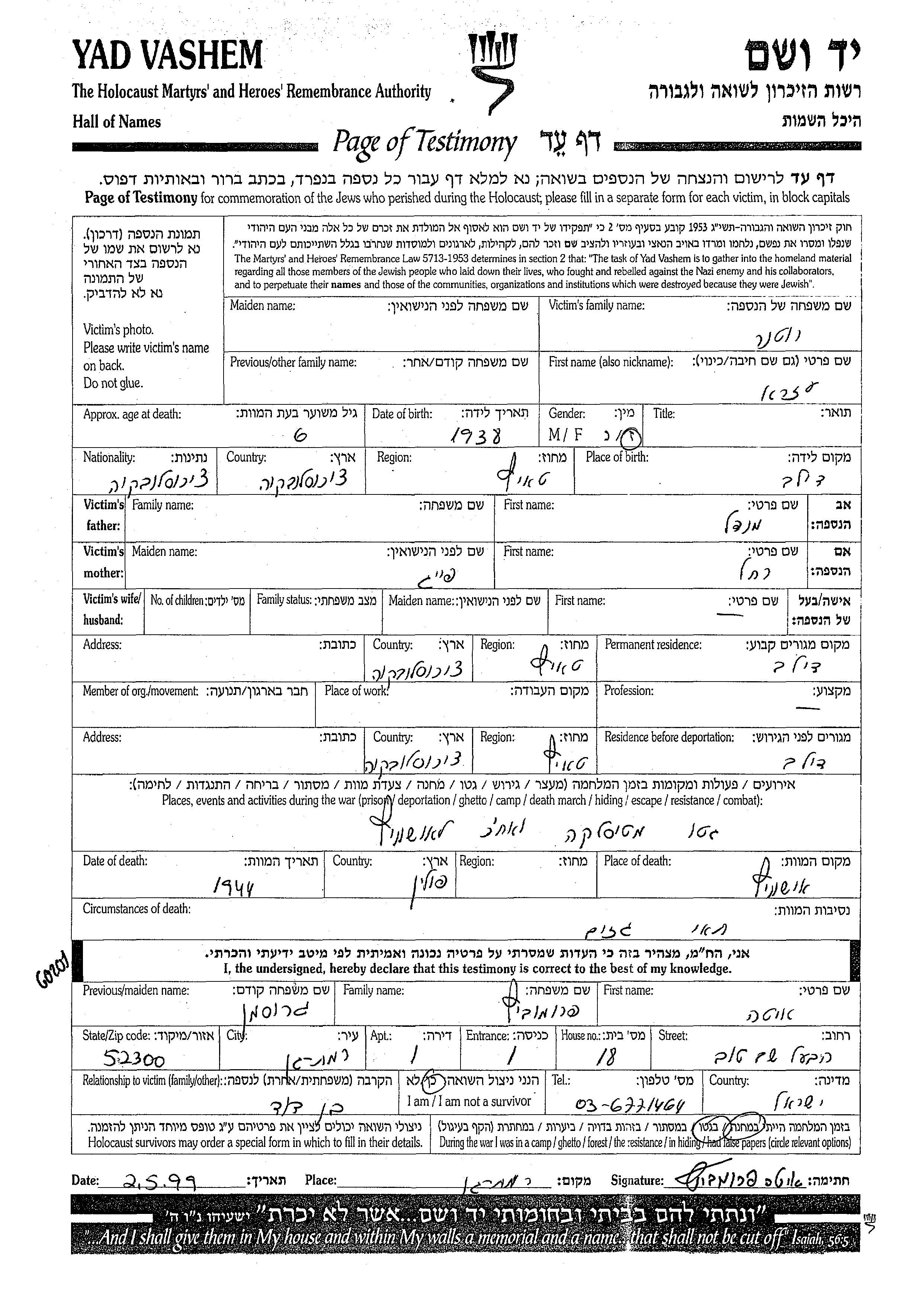 Ezra wurde in der Schoah ermordet. Todesort: Auschwitz, Polen im Jahr 1944.