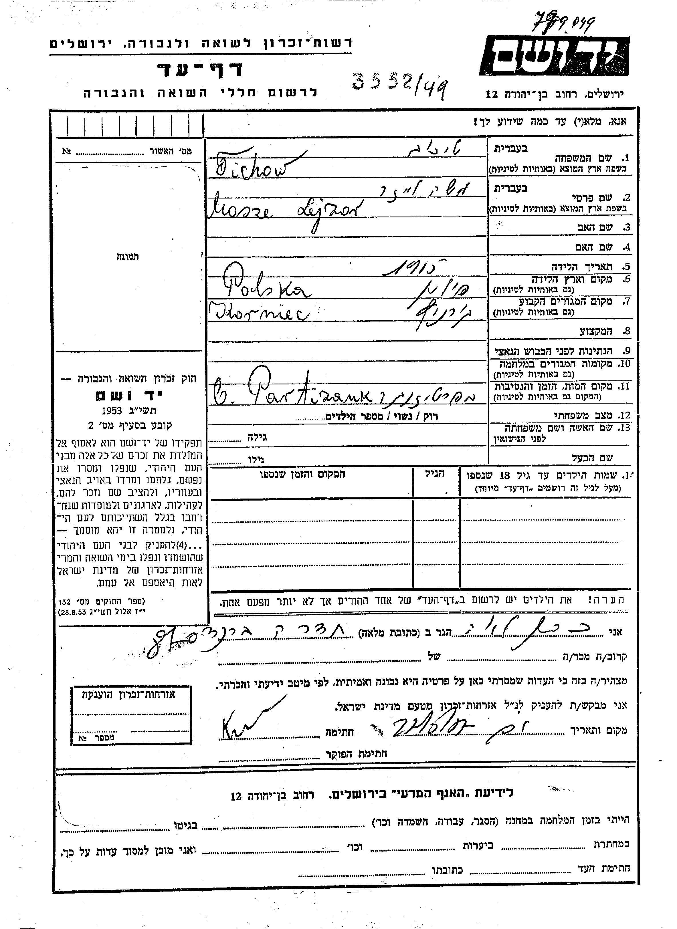 Tichow Mosze Lejzor 1915 Kornitz, Polen Gedenkblatt