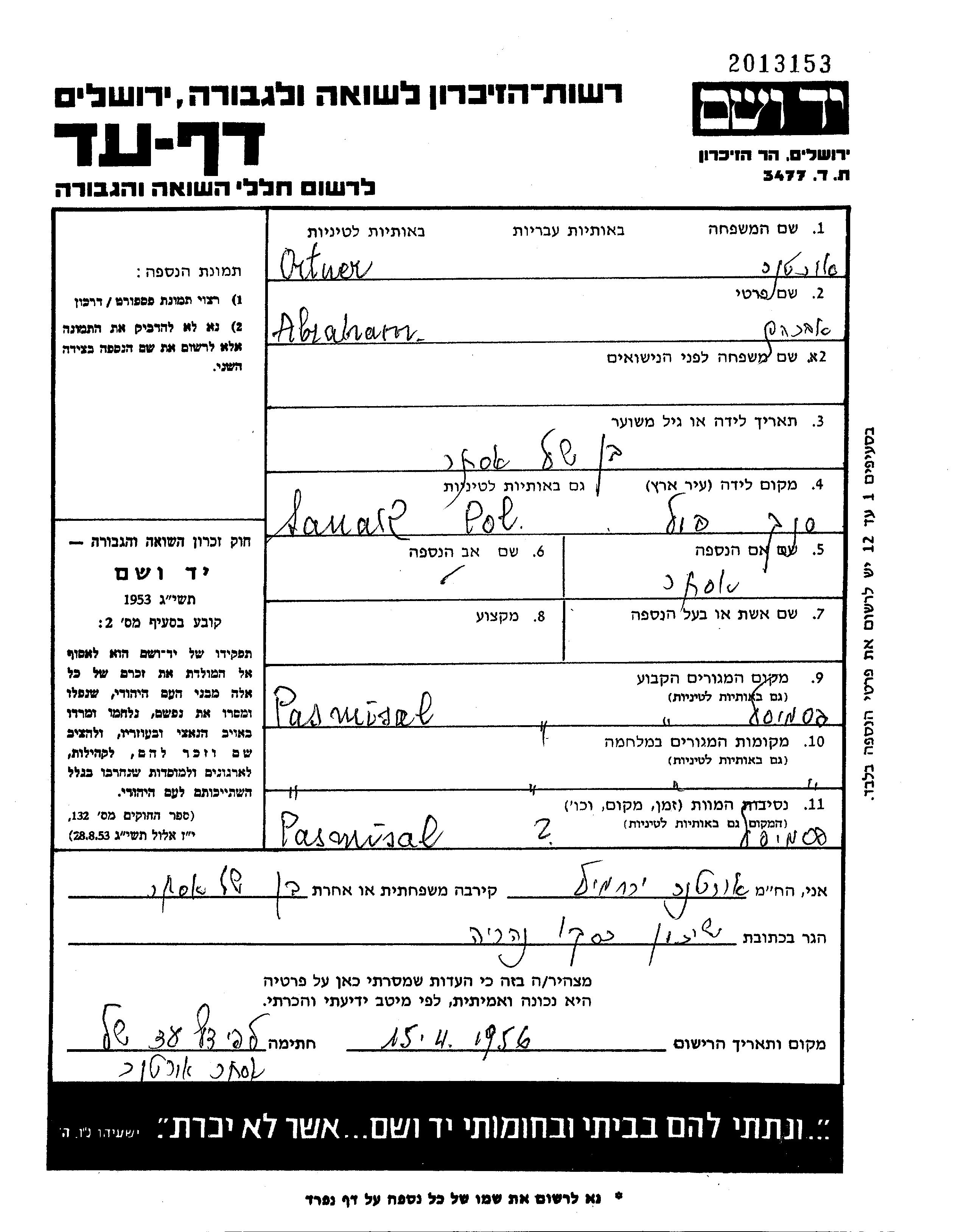 Abraham wurde in der Schoah ermordet. Todesort: Przemysl, Polen.