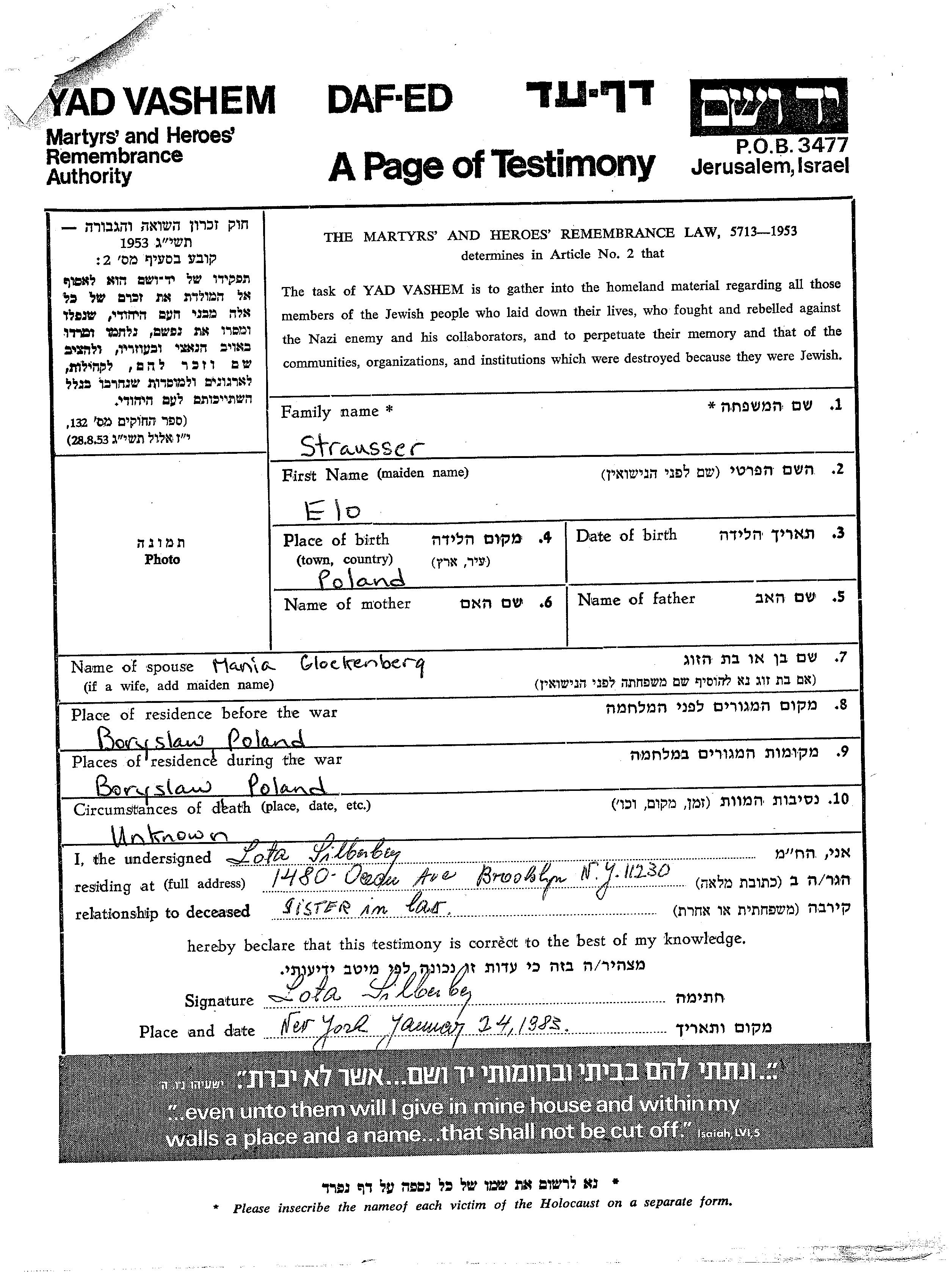 Elo Strausser wurde in Polen geboren. Vor dem Zweiten Weltkrieg lebte er in Boryslaw, Polen. Während des Krieges war er in Boryslaw, Polen.