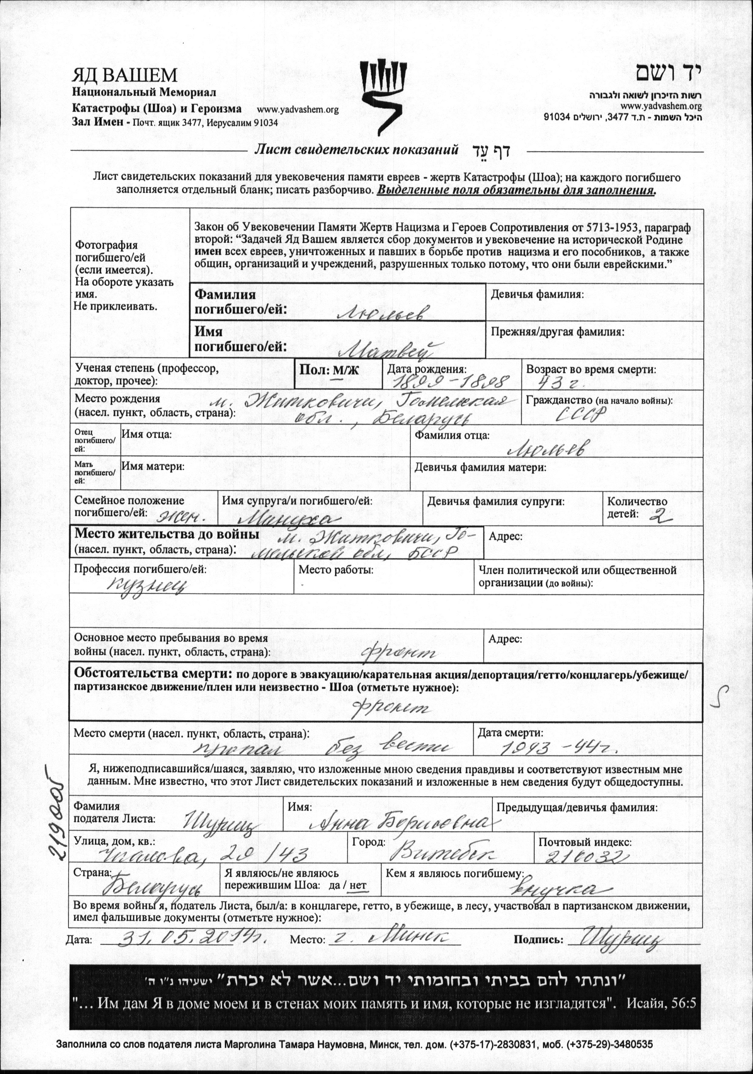 Lyulyev Matvey Zhitkovichi, Weißrussland (UdSSR) Gedenkblatt