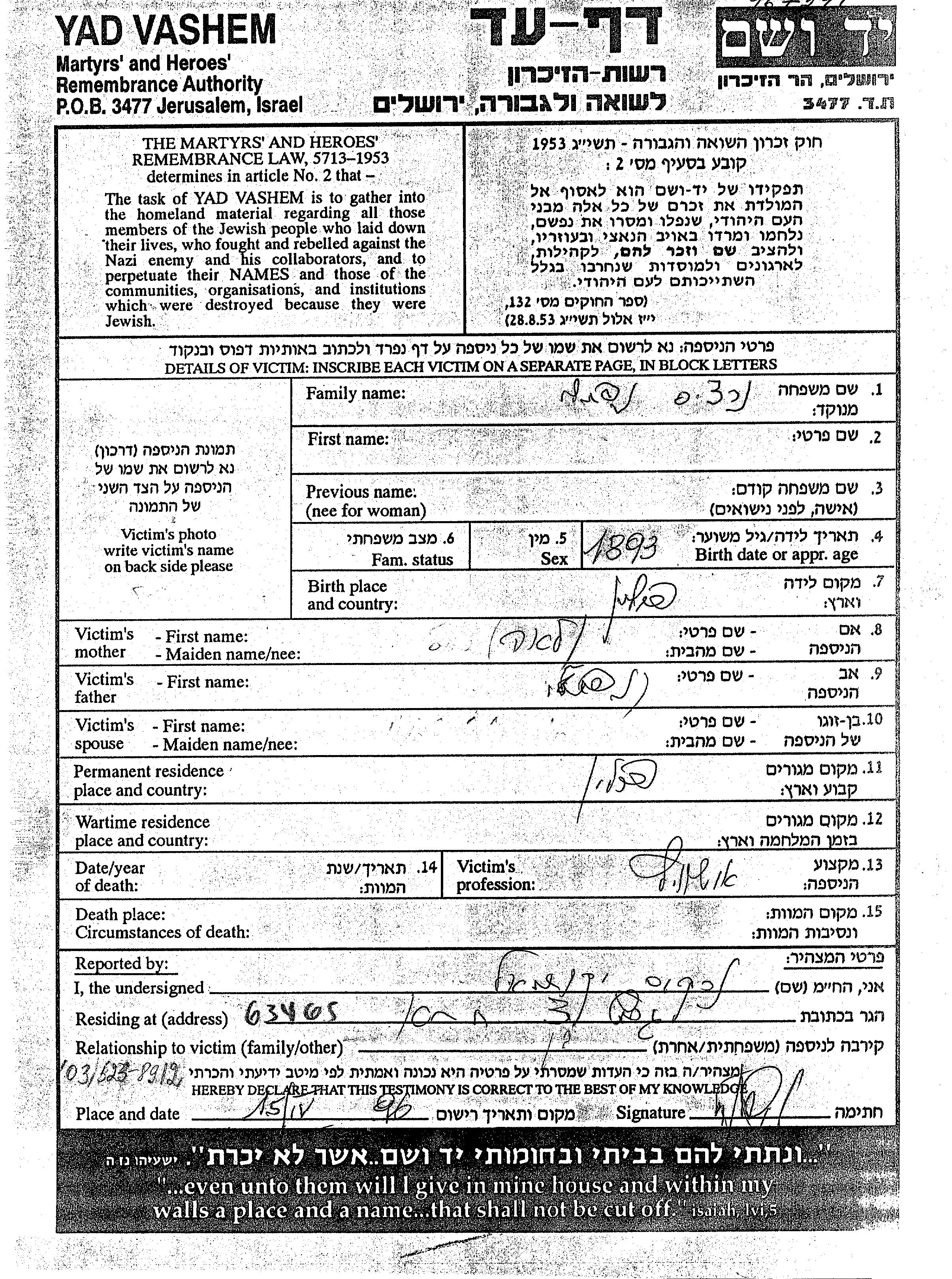 Naftali wurde in der Schoah ermordet. Todesort: Auschwitz, Polen.