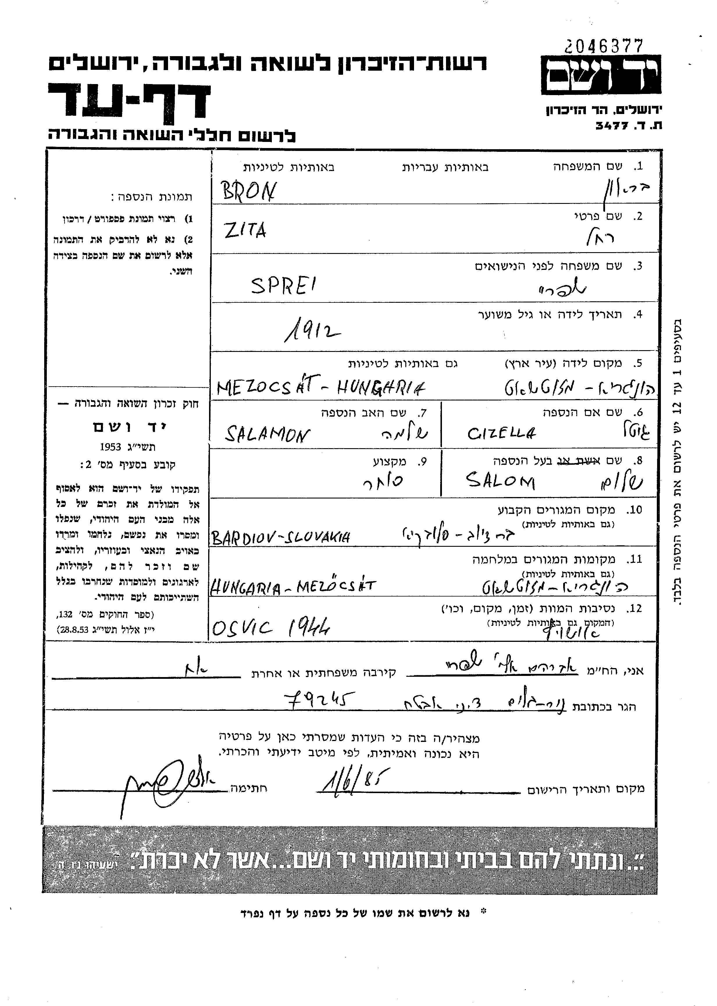 Rakhel Zita wurde in der Schoah ermordet. Todesort: Auschwitz, Polen im Jahr 1944.
