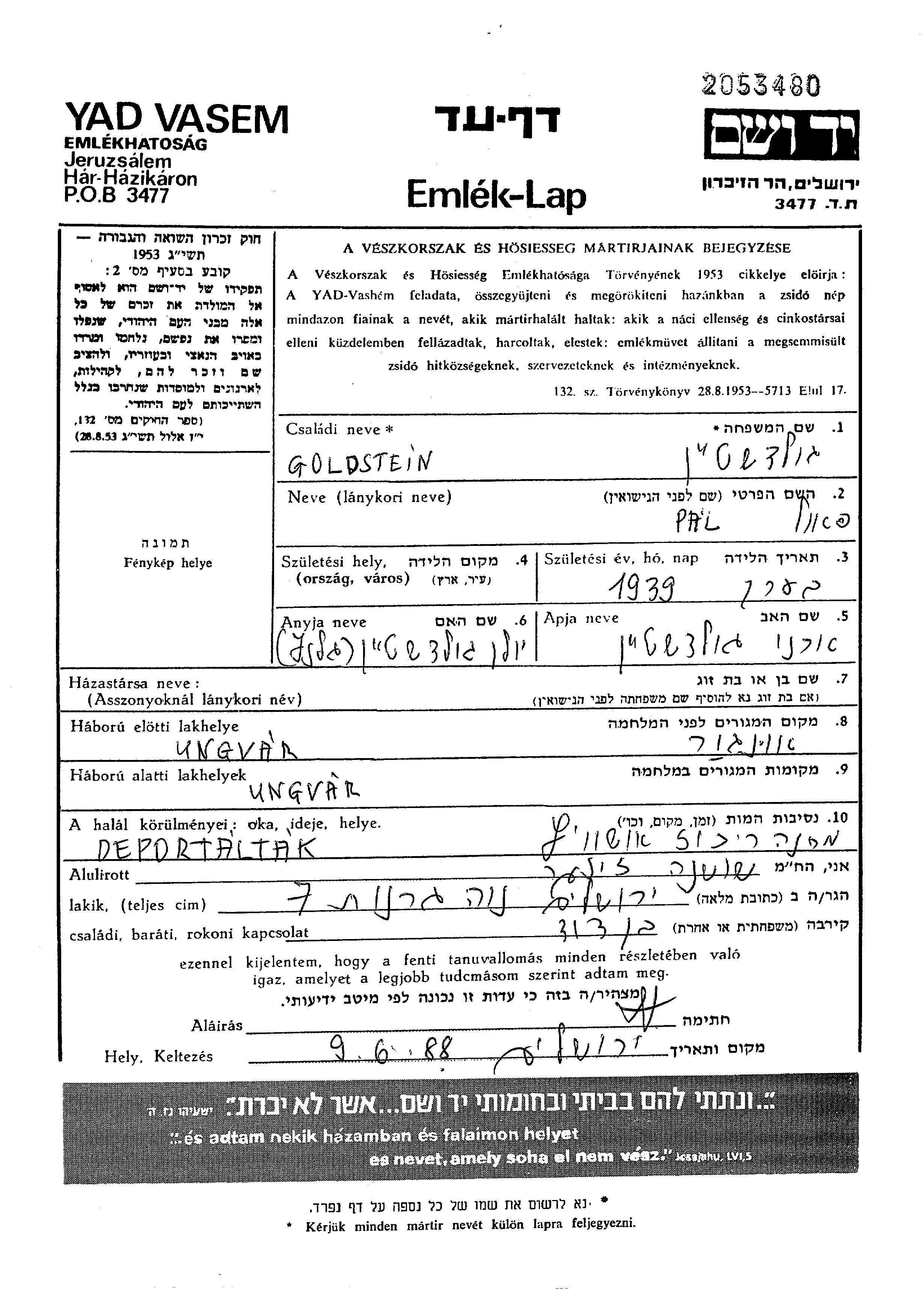 Pal Goldstein Glantz wurde im Jahr 1939 geboren. Er war der Sohn von Erno und Jolan. Vor dem Zweiten Weltkrieg lebte er in Ungvar, Tschechoslowakei. Während des Krieges war er in Ungvar, Tschechoslowakei.
