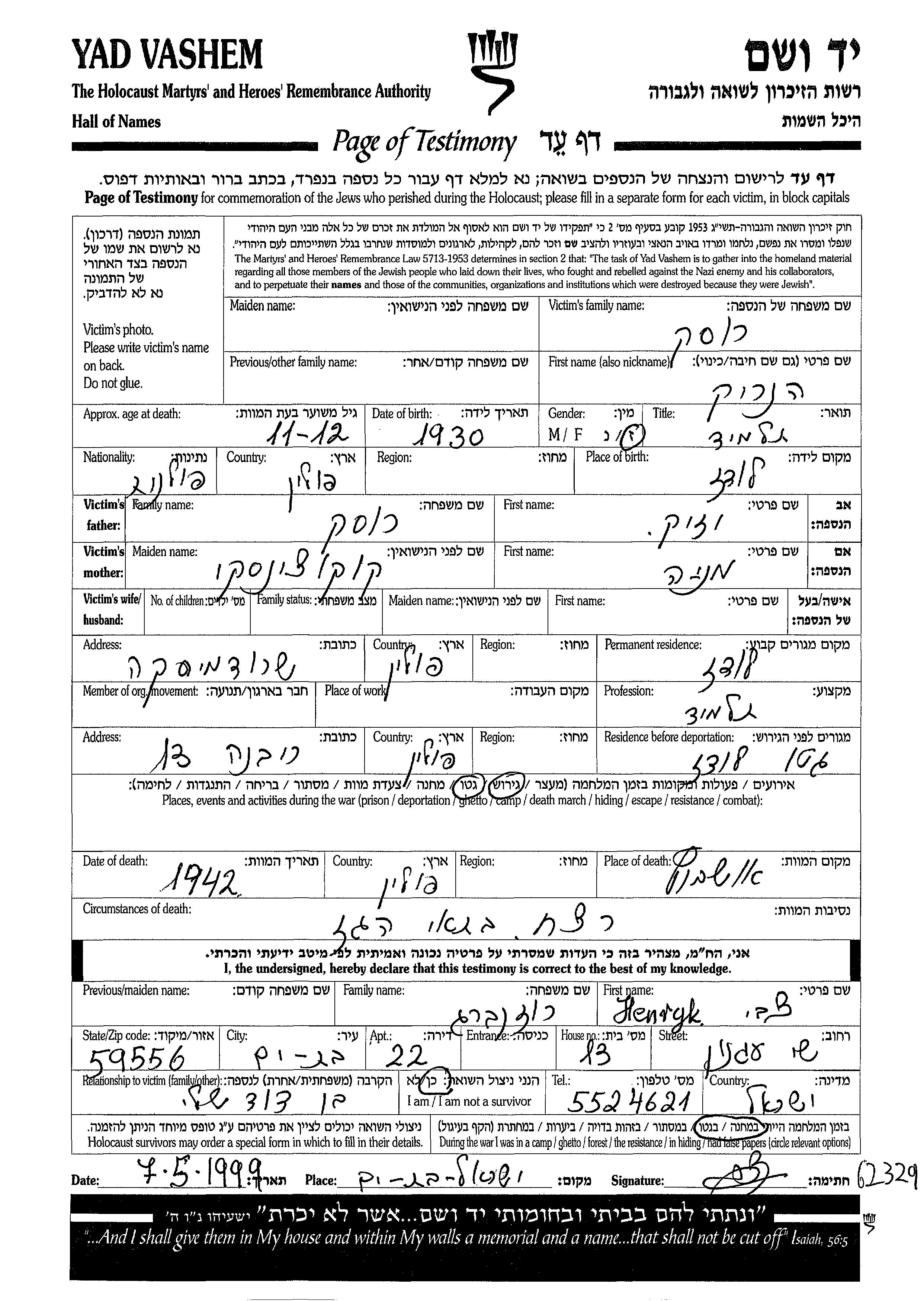 Henrik wurde in der Schoah ermordet. Todesort: Auschwitz, Polen im Jahr 1942.