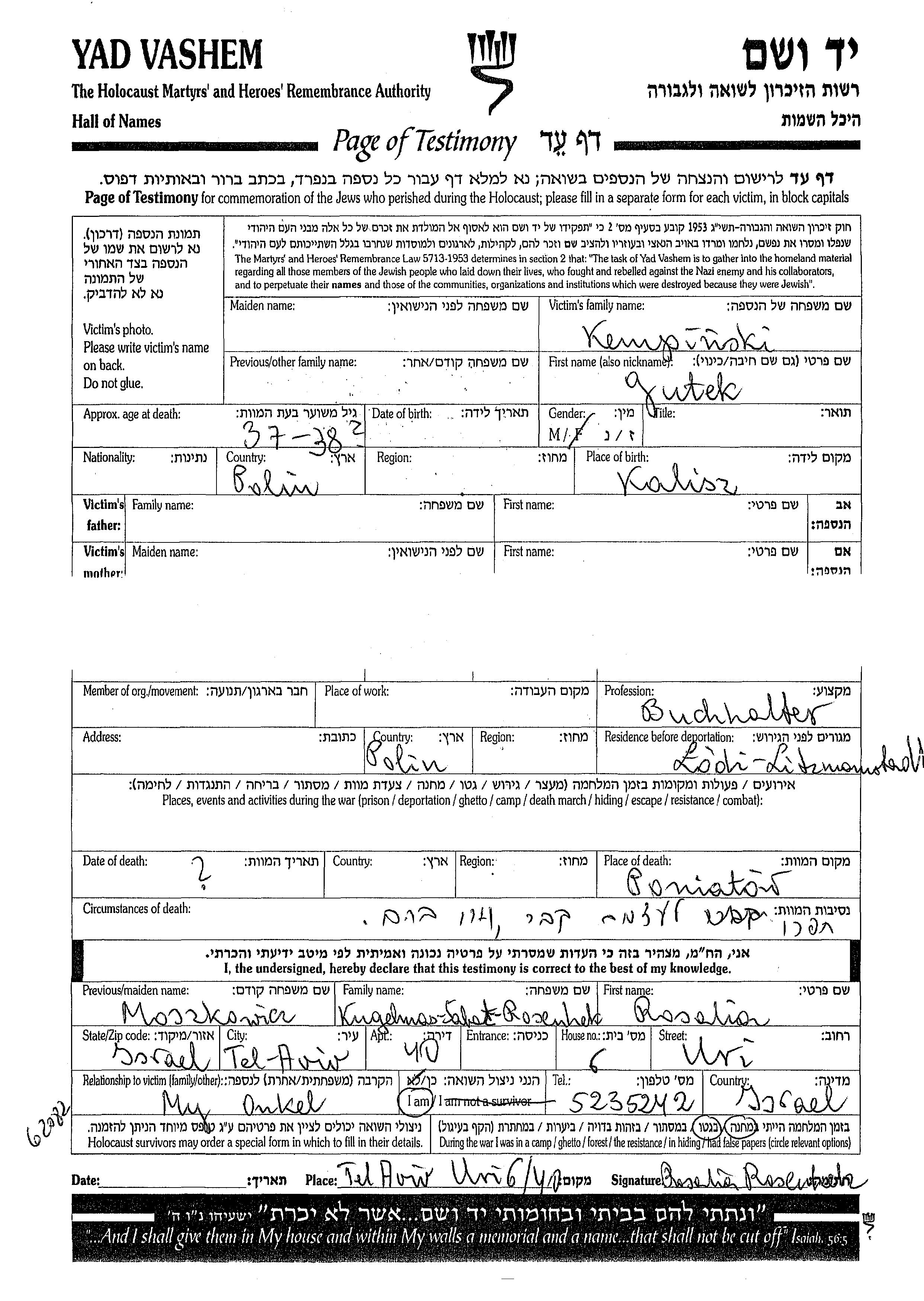 Gutek Kempinski wurde in Kalisz, Polen geboren. Er war Buchhalter/-in. Während des Krieges war er in Lodz, Polen.