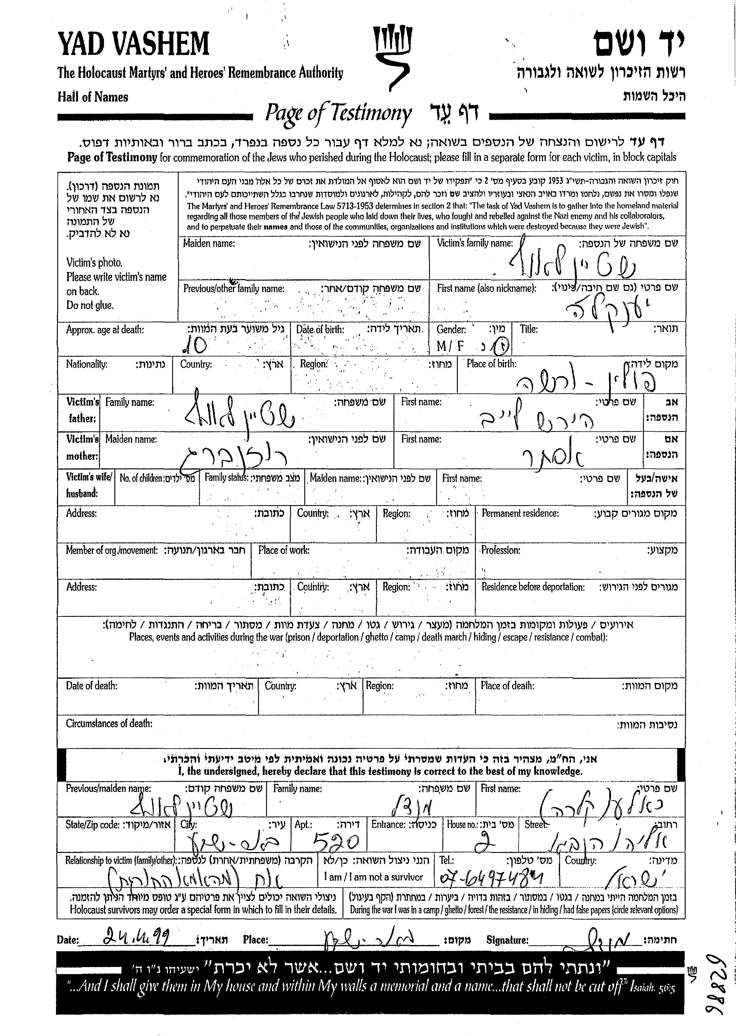 Shteinlauf Yaakov unbekannter Ort, Gedenkblatt