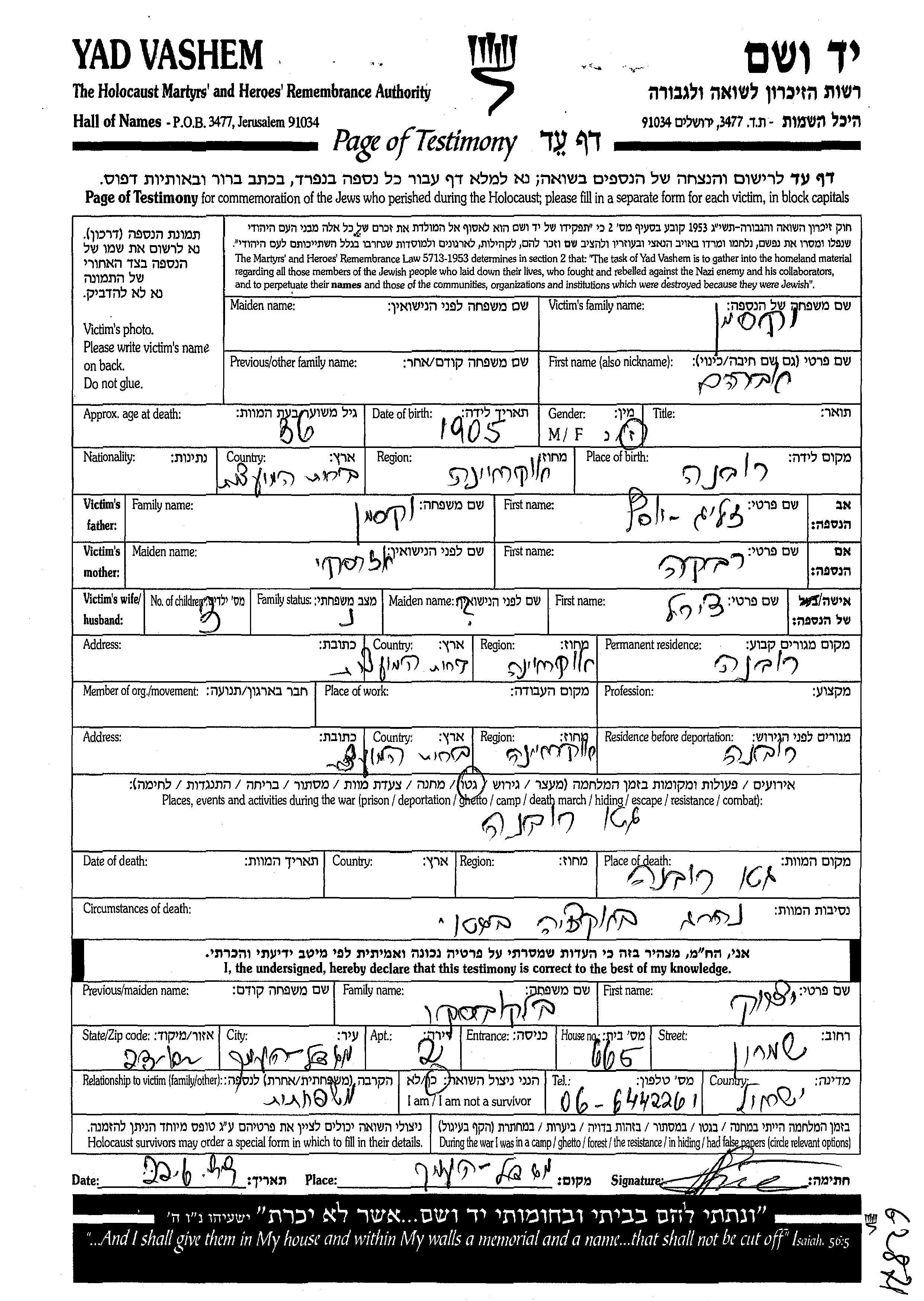 Avraham wurde in der Schoah ermordet. Todesort: Rowne, Polen.