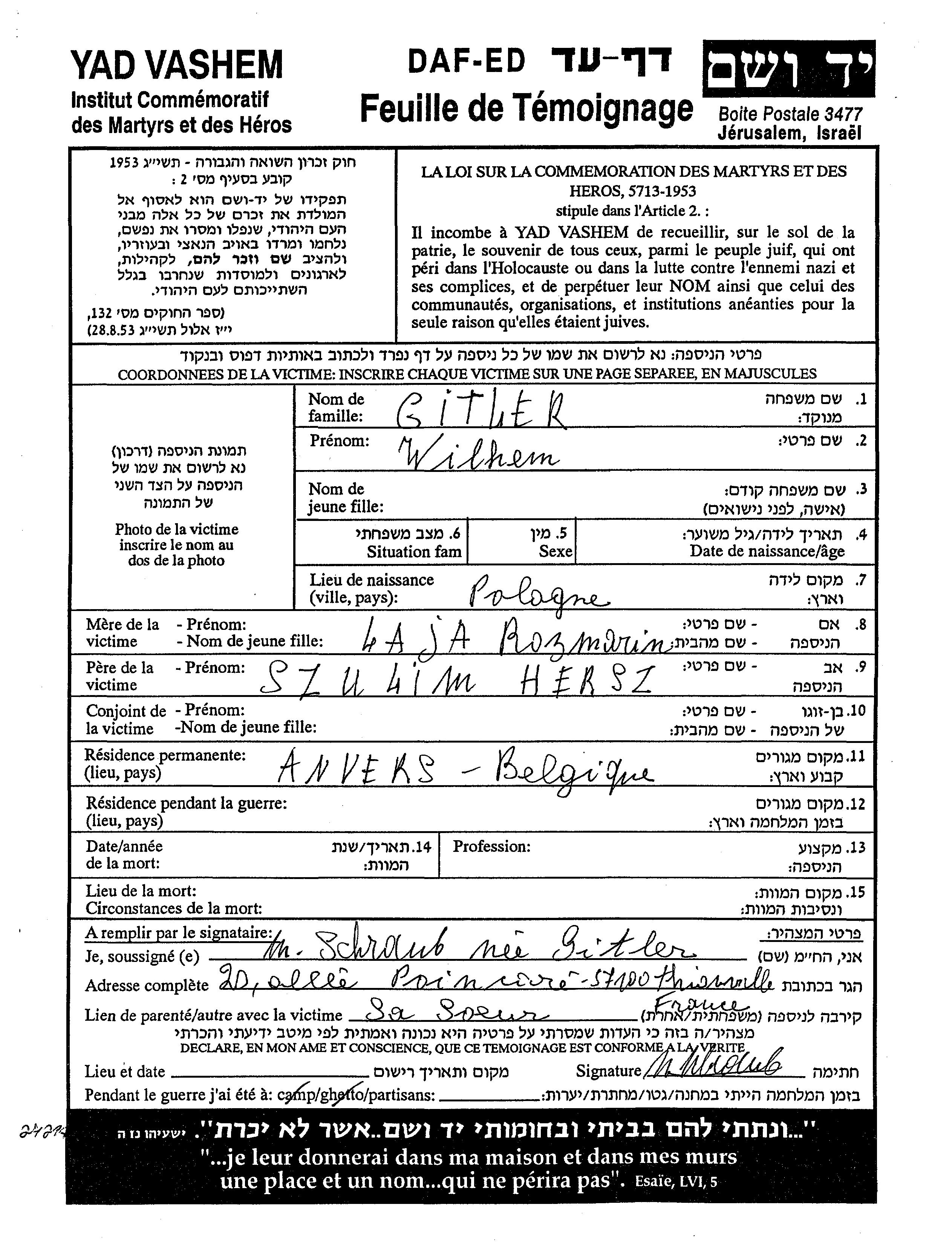 Wilhelm wurde in der Schoah ermordet.