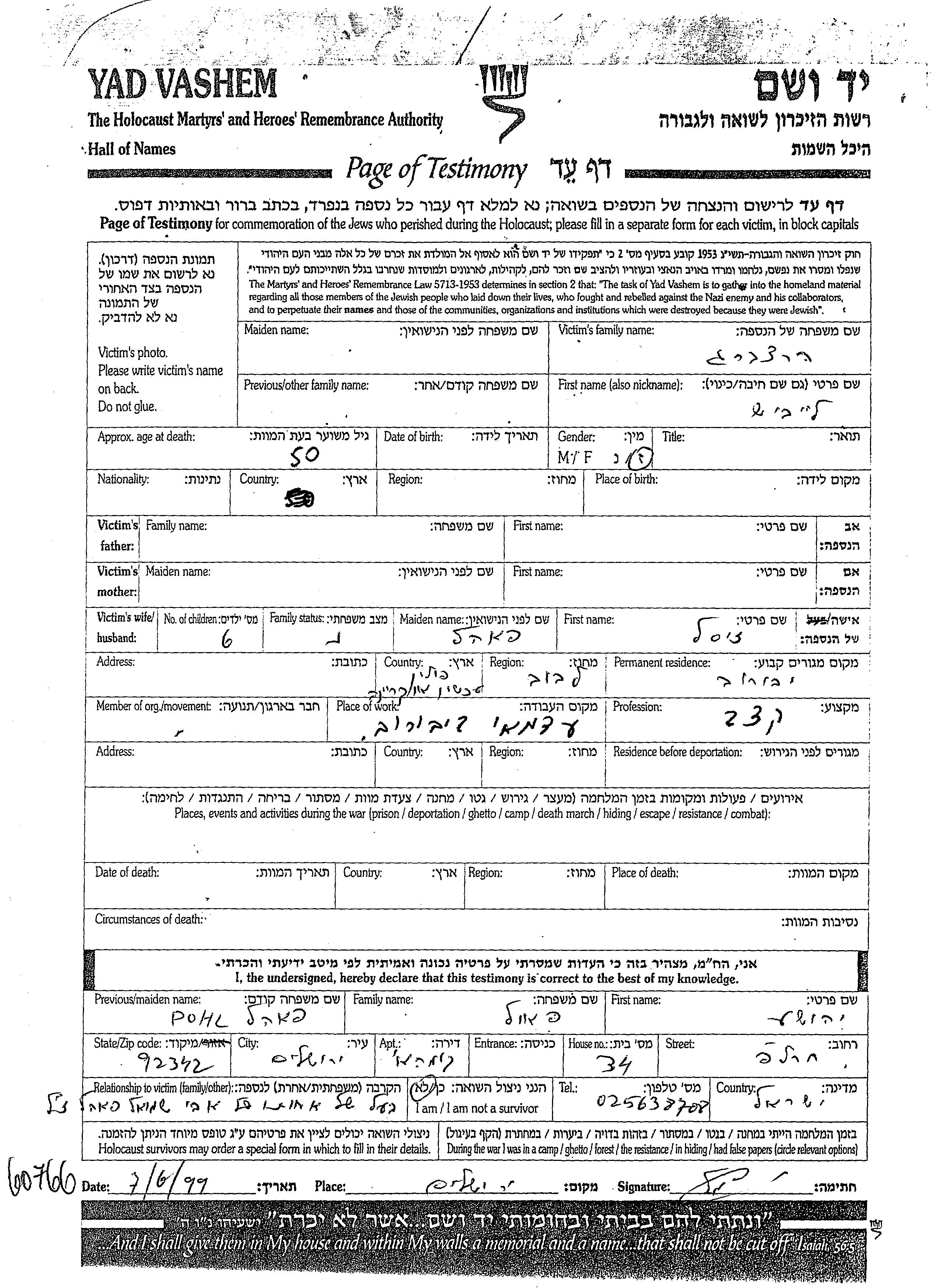Leibish Hertzberg. Er war Metzger/-in und mit Zysl, geb. Pol Verheiratet. Vor dem Zweiten Weltkrieg lebte er in Jaworow, Polen.