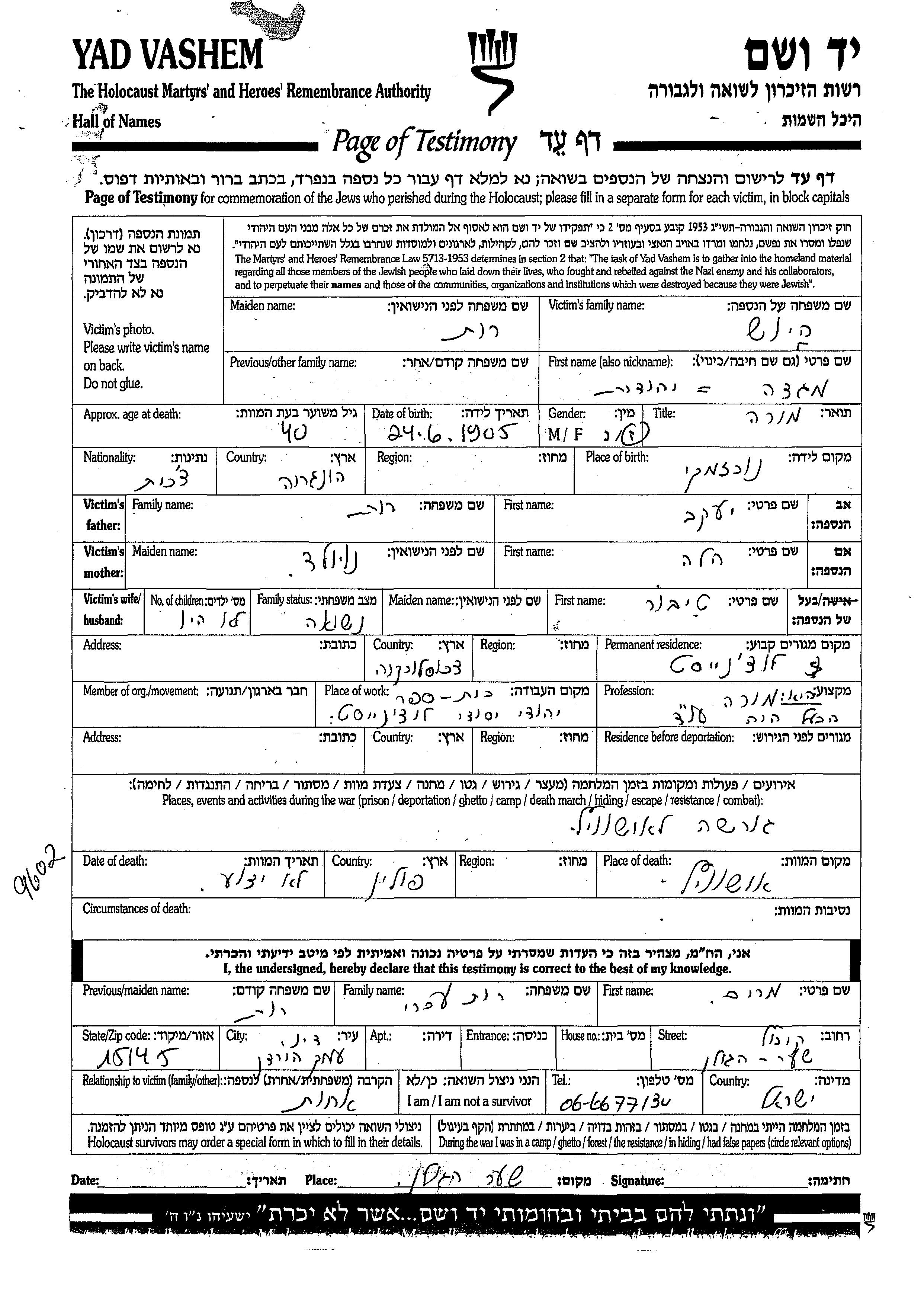 Magda wurde in der Schoah ermordet. Todesort: Auschwitz, Polen.