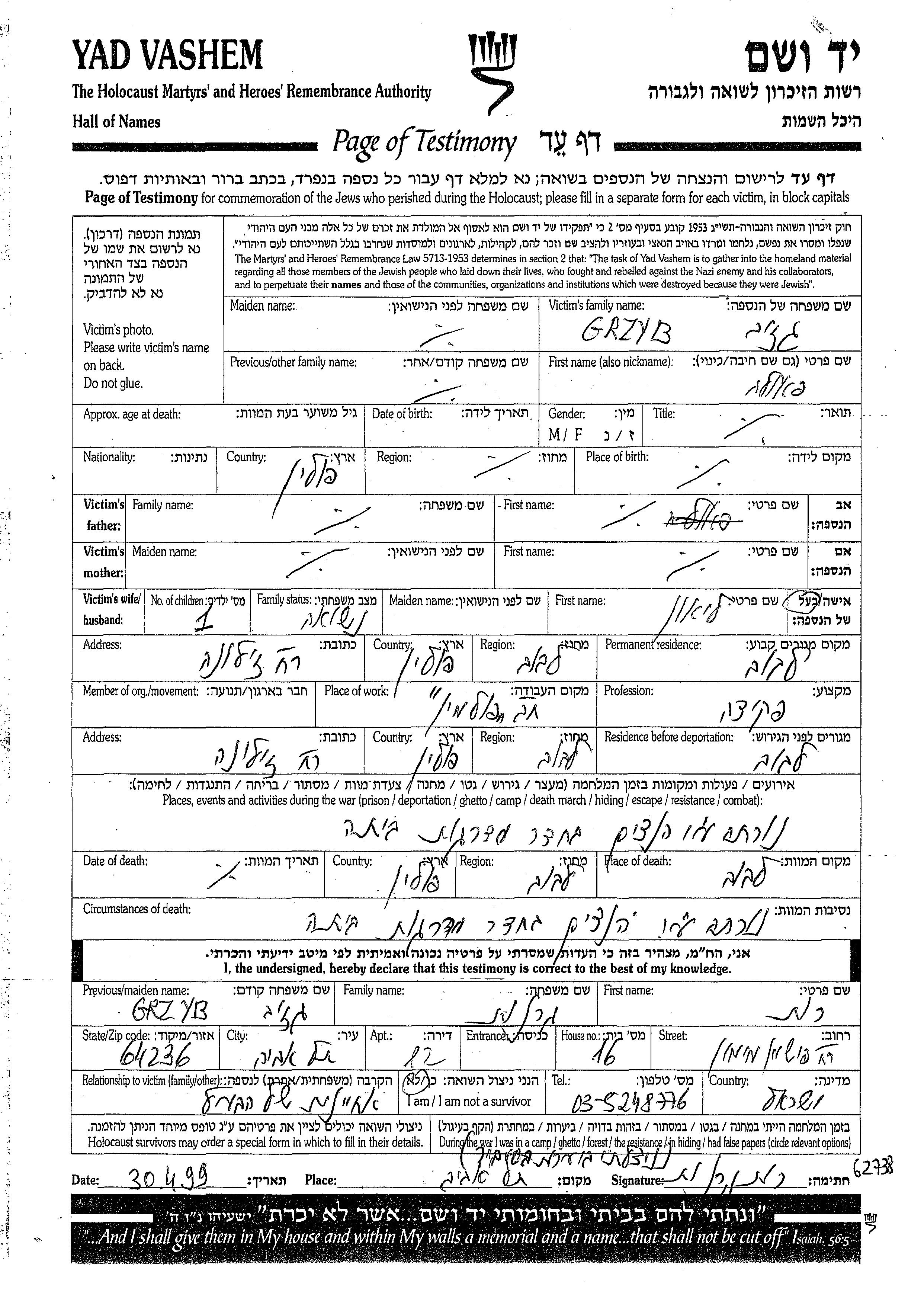 Paula Grzyb wurde in Polen geboren. Sie war Angestellte/-r und mit Lion Verheiratet. Vor dem Zweiten Weltkrieg lebte sie in Lwow, Polen. Während des Krieges war sie in Lwow, Polen.