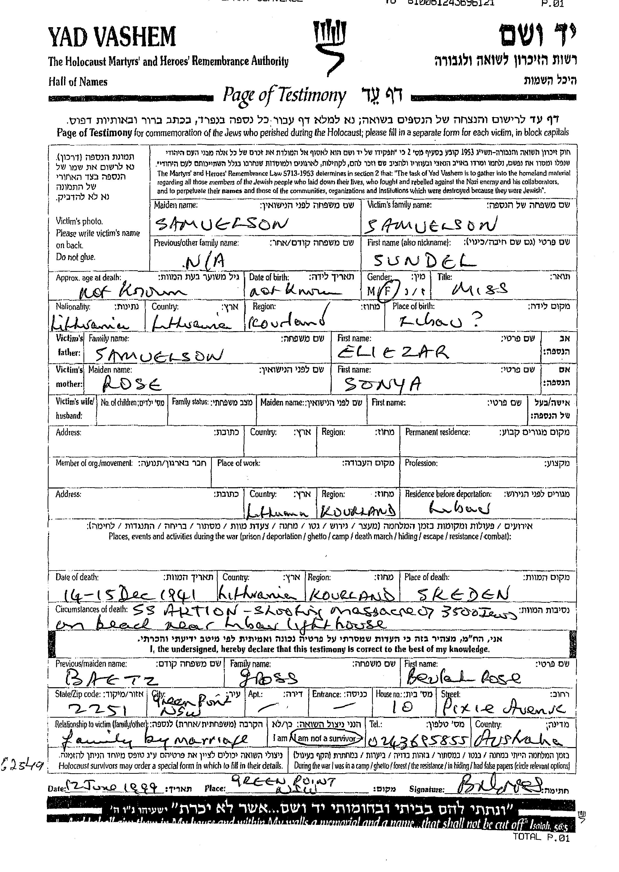 Sundel wurde in der Schoah ermordet. Todesort: Srednik, Litauen im Jahr 14/12/1941.