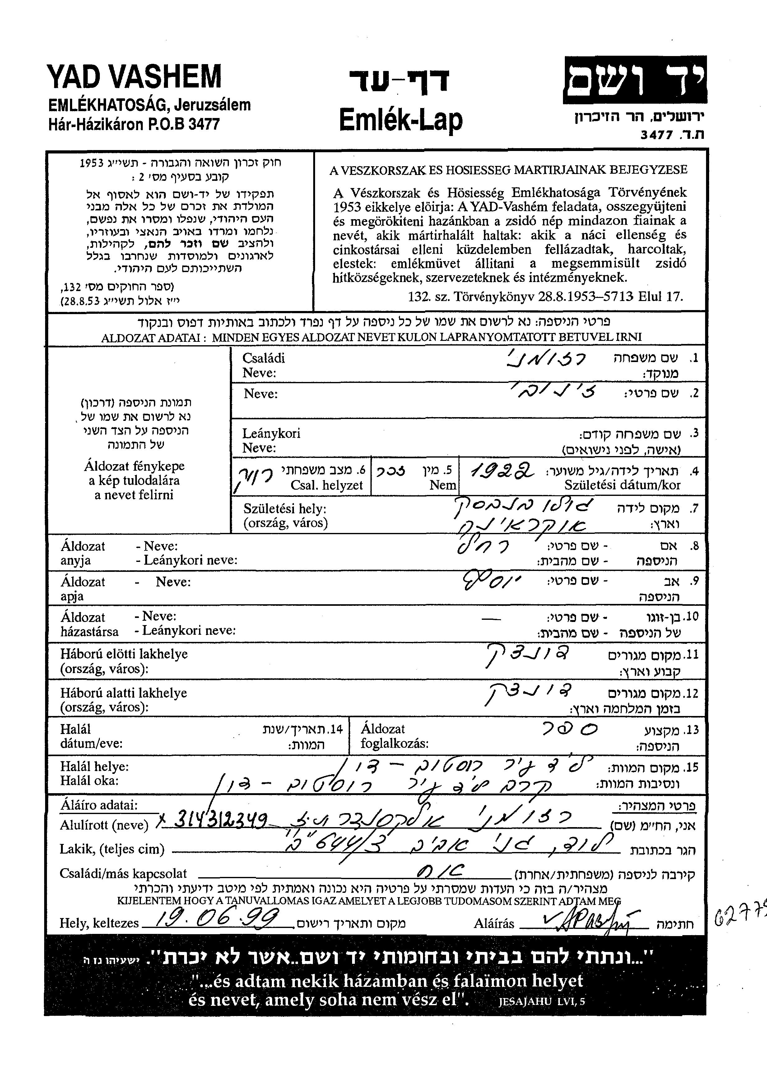 Zinovi wurde in der Schoah ermordet. Todesort: Rostov na Donu, Russland (UdSSR).
