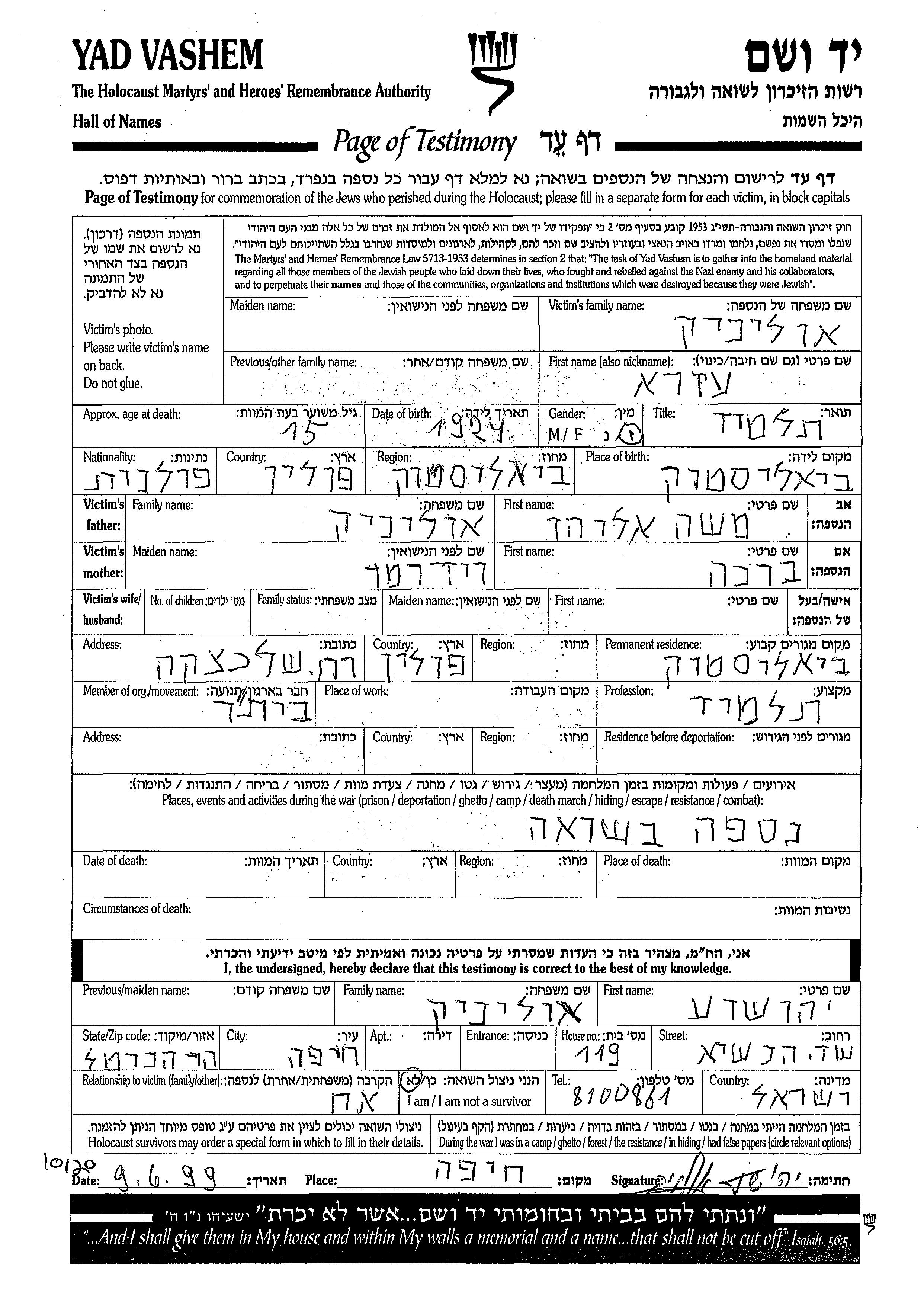 Oleinik Ezra 1924 Bialystok, Polen Gedenkblatt