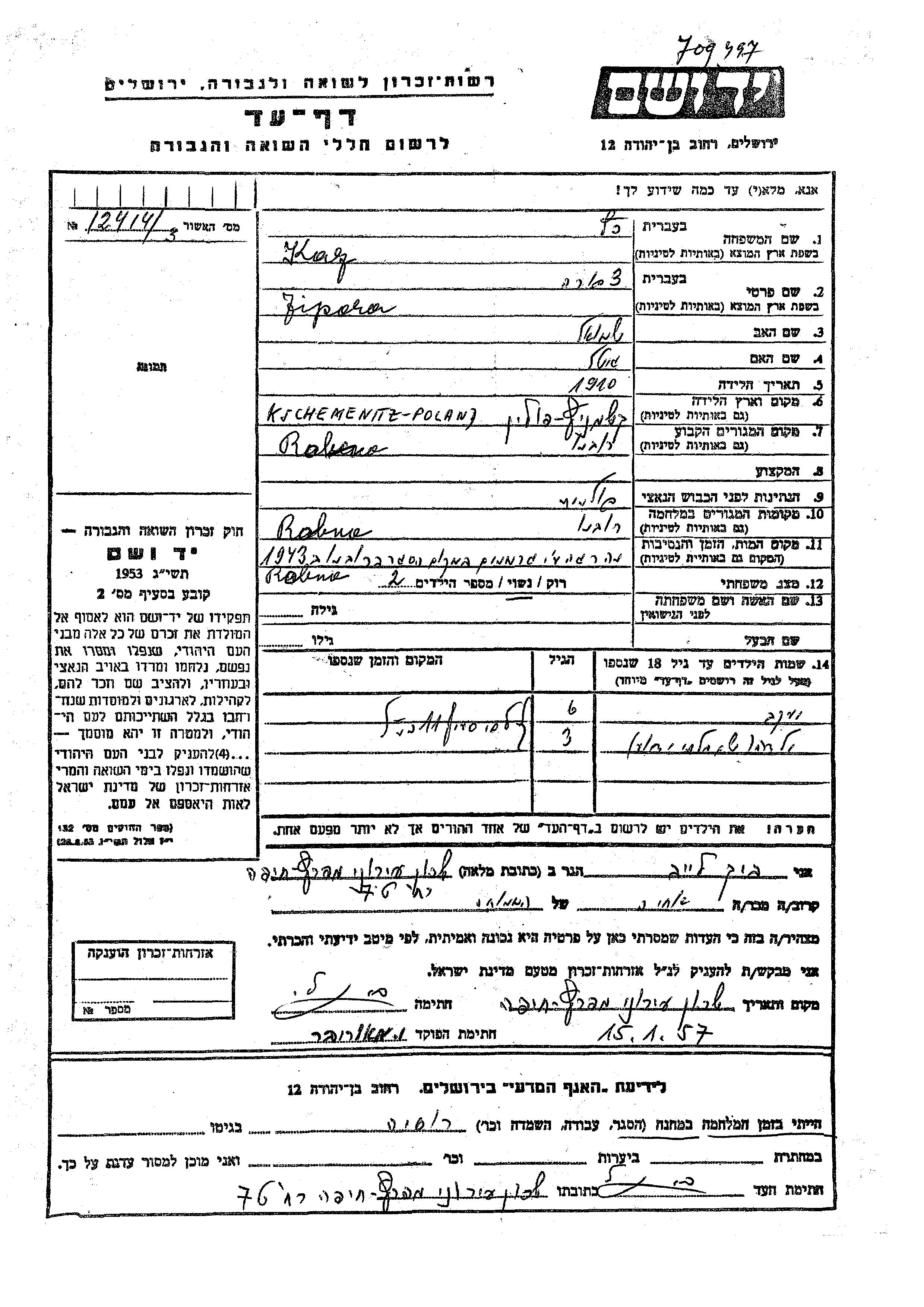 Zipora wurde in der Schoah ermordet. Todesort: Rovno, Polen im Jahr 1943.