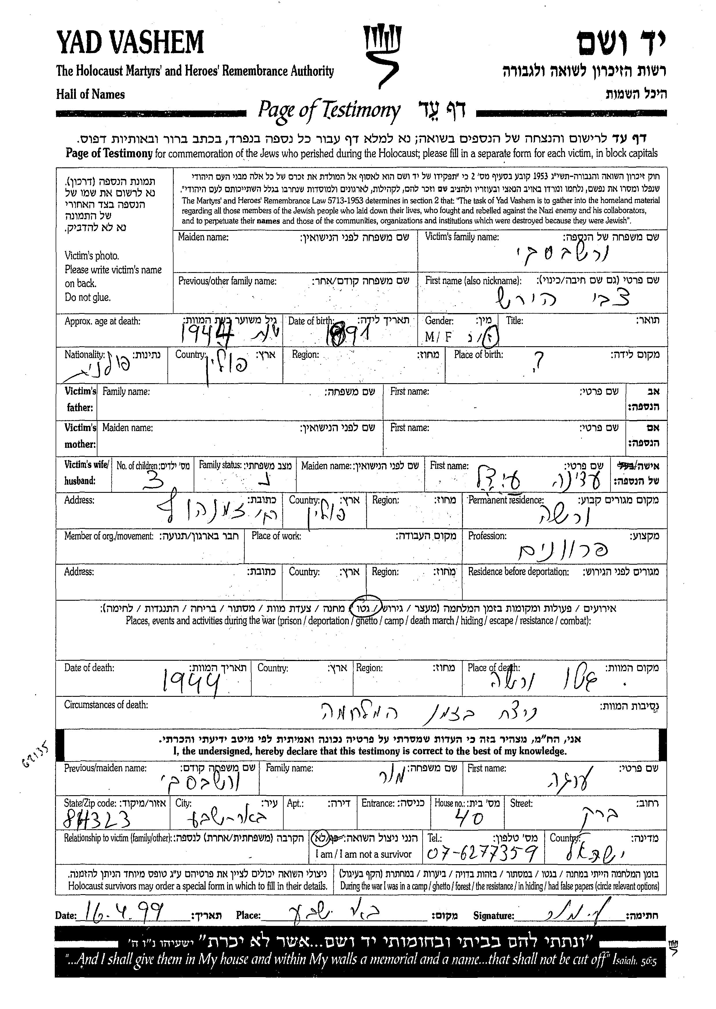 Tzvi wurde in der Schoah ermordet. Todesort: Warsaw, Polen im Jahr 1944.