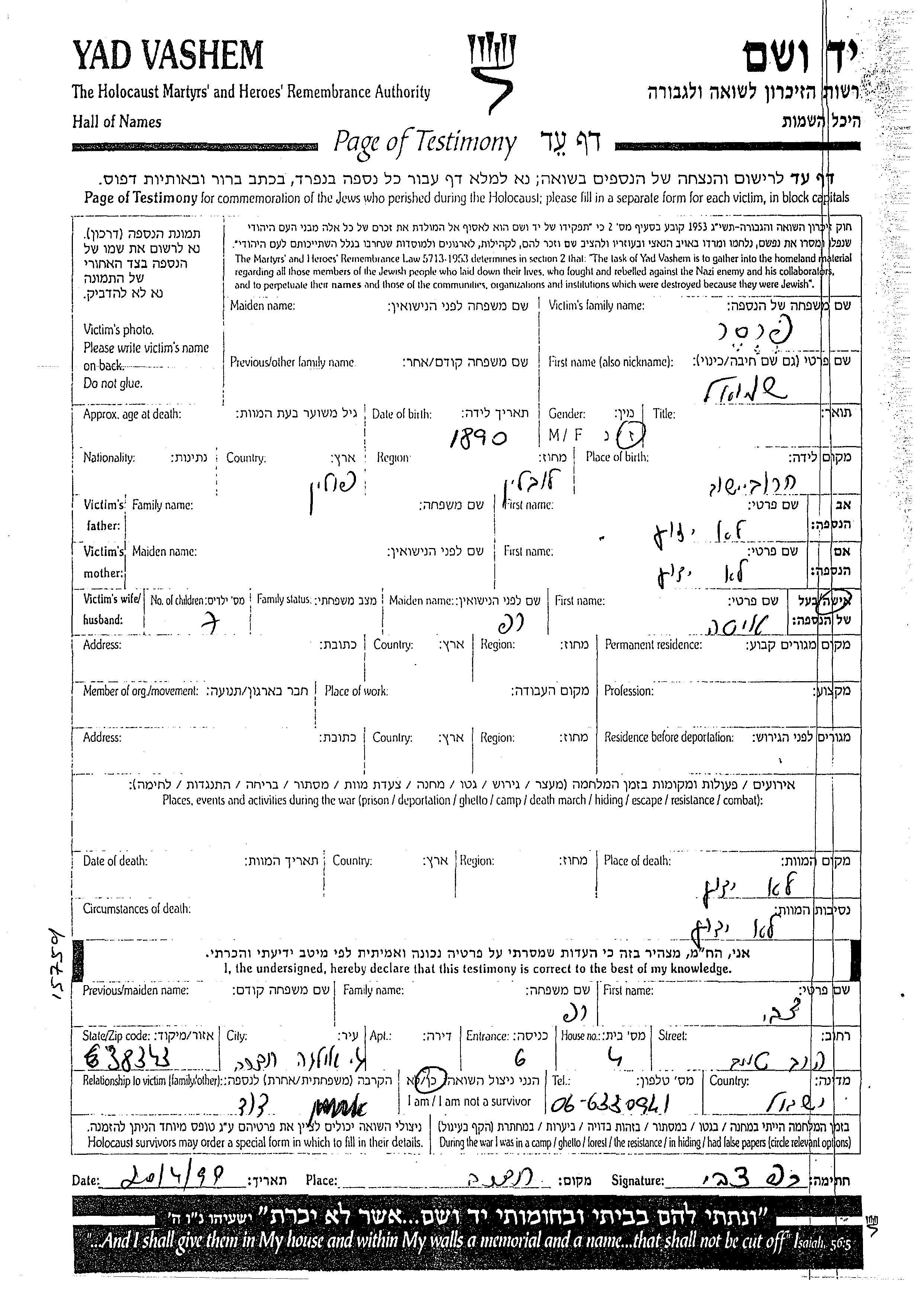 Preser Shmuel 1890 unbekannter Ort, Gedenkblatt
